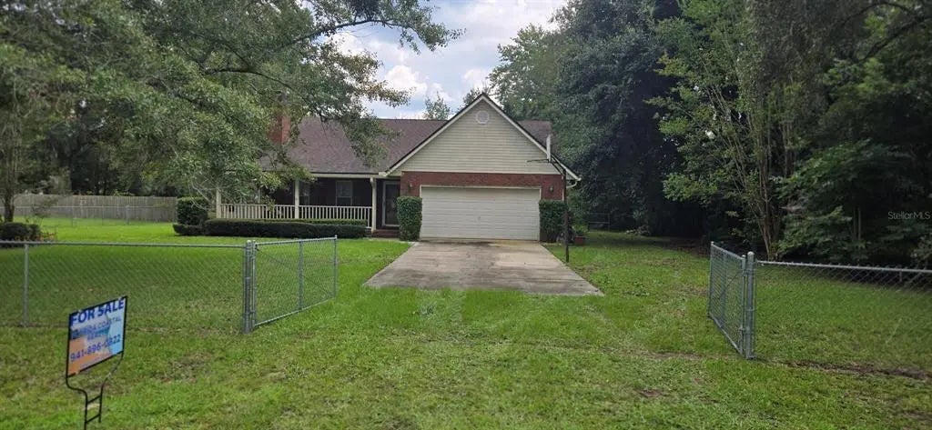 AWESOME! 1,637 sq ft ranch, with a wrap around porch, 2 car garage, CLOSE TO 1 acre, fenced lot, large kitchen with solid oak cabinets, updated counter tops, built in micro, elec range, refrigerator, pantry, dinning room with door leading to porch, large living rm with cathedral ceiling, wood burning, stone, fireplace, large master bedroom with tray ceiling, large master bath with walk in closet, dual vanity sinks, tub, tile stand up shower, ceiling fans thru out, filtration system, irrigation system, and much more. Solid built home, move in ready, quiet established neighborhood, NO HOA. As is