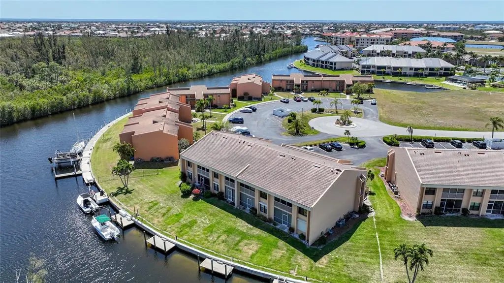 PRICE REDUCED!!!! Welcome to the desirable community of Conquistador Landing in Punta Gorda Isles! This second floor condo features 2 bedrooms, 2 bathrooms, and an open and split floor plan. BRAND NEW IMPACT WINDOWS & DOORS AWAIT YOU! No need to put up any hurricane shutters, this condo is ready & one of the few at this complex with impact glass. This end unit lets in plenty of natural light, offers water views from almost every room, and has tile flooring throughout. The kitchen features granite countertops and plenty of cabinets for storage, plus there is eating space in the kitchen. The great room leads to your very own private lanai, overlooking the canal and your dock. The master suite has a large bedroom with great views of the canal, a walk in closet with attic access, and leads to your private bathroom. The guest bedroom and bathroom are on the opposite side of the condo to allow privacy for your guests. Interior laundry room. Enjoy boating? You are only steps away from your very own concrete dock (#6), with sailboat access to the open waters of Charlotte Harbor. Boat lifts can now be added! The well maintained community has a large pool overlooking the canal. This condo is conveniently located to Fishermen's Village, downtown Punta Gorda, shopping, parks, biking/walking trails, dining, medical, entertainment, and so much more. Make your appointment to see this one today!