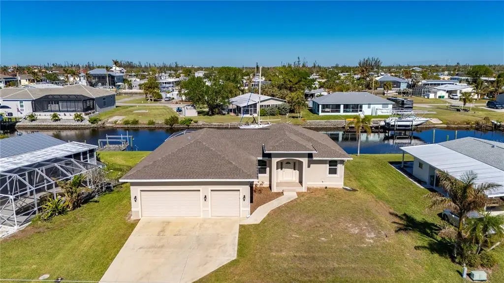 Under contract-accepting backup offers. Never lived in home with 3 bedrooms, 2 baths, 3 car garage, brick paver pool area and a concrete seawall. Gorgeous tiled flooring everywhere except the bedrooms. Tiled, walk in showers in both bathrooms. Abundant amount of cabinetry and granite countertops especially in the kitchen where the stove and other appliances have not been used. No damage from Helene or Milton. The 3 car garage is ready to hold your toys. The covered lanai is ready for you to enjoy the views of the pool and overlooking the sailboat access canal which leads into Charlotte Harbor in a 15 minute ride through picturesque Alligator Creek. You cannot begin to replace this home at the listing price let alone on a sailboat lot with a full concrete seawall!!