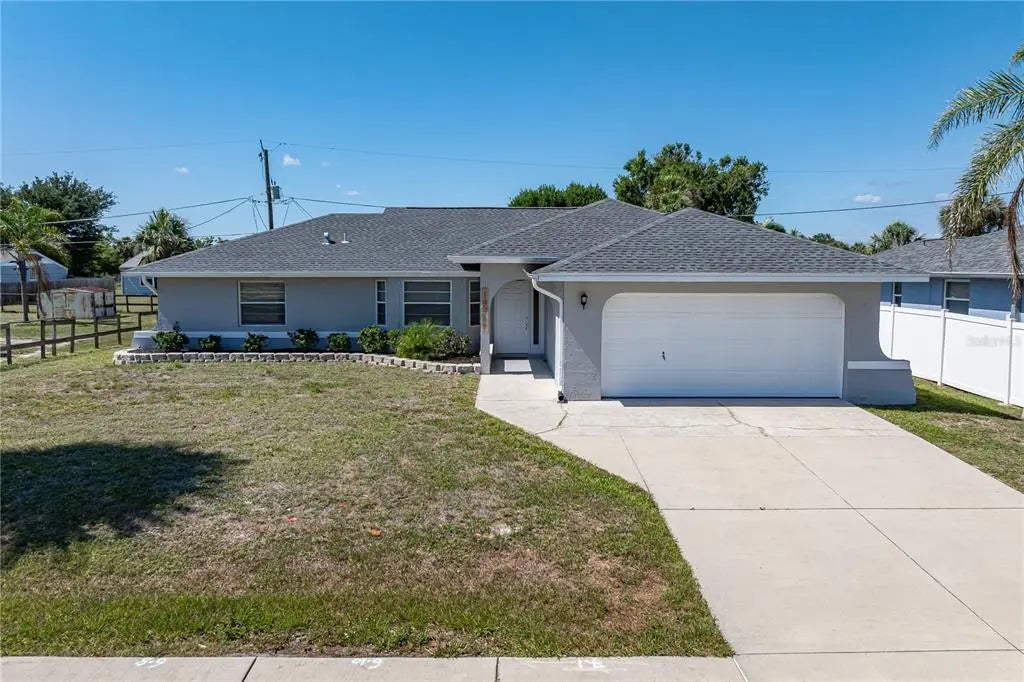 UPDATED & MOVE-IN READY, PORT CHARLOTTE HOME W/MODERN INTERIOR & ROOM TO GROW - This renovated, 3 bed/2 bath home, located in the growing Edgewater area of Port Charlotte, offers comfort, style, and convenience — all minutes from shopping, dining, medical centers, and the new Sunseeker Resort. Enjoy an active lifestyle with miles of sidewalks just outside your front door connecting you to local parks, scenic trails, and waterfront recreation areas. Inside, the open layout is enhanced by cathedral ceilings and a seamless blend of wood-look ceramic tile and luxury vinyl plank flooring throughout the home — no carpet in sight. The great room and dining area feel bright and inviting thanks to neutral tones, large windows & sliders that invite in plenty of natural light. A galley-style kitchen features crisp white cabinetry, a subway tile backsplash, contemporary light fixtures and stainless-steel appliances — creating a fresh, modern feel. Adjacent to the kitchen is a spacious breakfast nook or secondary dining space framed by windows & a sliding glass door that leads to the screened lanai. The primary suite is generously sized with an added bump out as well as a large, walk-in closet. The en-suite bath boasts a tiled walk-in shower, updated vanity with marble counter, and modern lighting. The split bedroom floor plan boasts two guest bedrooms - one with a large walk-in closet. Guest rooms share the guest bath that has been updated to match the clean, contemporary aesthetic of the home. Guest bath has walk-out access to the backyard or future pool area. A tucked-away laundry area with overhead storage is located in guest hallway. Step outside to a screened lanai ideal for relaxing or entertaining with tranquil backyard views. The yard has plenty of room to add a backyard pool by extending the lanai, privacy fencing on two sides, and a cozy firepit area that is perfect for starlit evenings or weekend BBQs. A new roof (2022) and new water heater (2024) provide peace of mind, along with an attached two-car garage for added storage or workshop space. With no HOA, you’ll enjoy the freedom to live how you choose. Start the next chapter of your Florida story right here—schedule your private showing today!