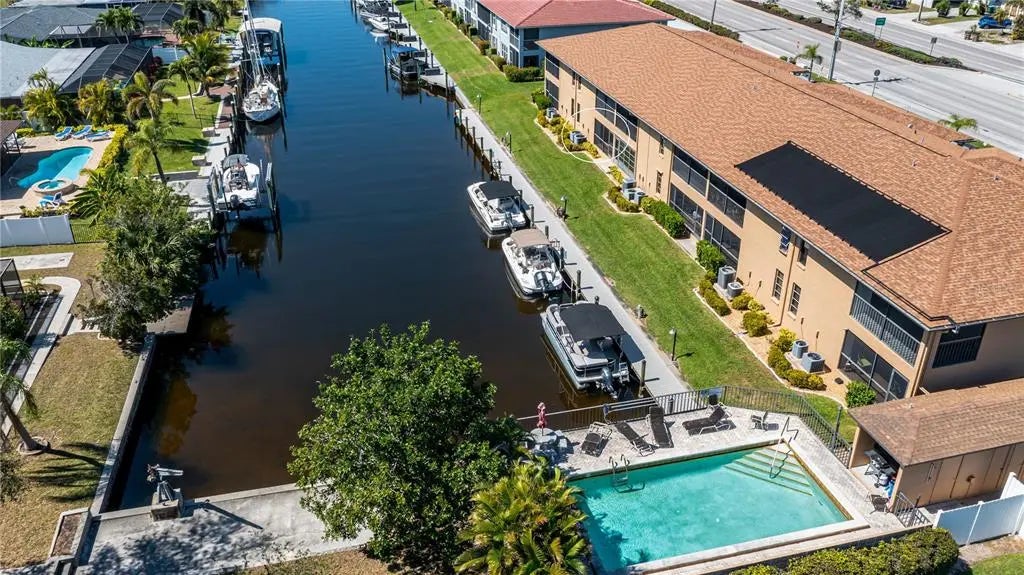 Discover true paradise with this First Floor, Sailboat Gulf access, Waterfront condo! No history of flooding here!!! This unit features hurricane impact windows for added peace of mind. The kitchen has been updated with granite countertops, soft close cabinets, and modern finishes. The seller is offering a credit of $5,000 towards new flooring so you can update it with your own personal taste! A newer AC (2020) and new water heater have been installed. Enjoy peaceful waterfront views from the comfort of your own lanai or enjoy it while relaxing by the community pool in this 55+ community. Take advantage of the pier and dock for fishing, boating, or kayaking. Boat dock slips are available on a first come, first serve basis. This condo also includes an assigned, covered parking spot right outside your door and a separate storage unit for your convenience. Located in the heart of Cape Coral, just minutes away from an array of restaurants, shopping, and entertainment options. Experience Florida living today!