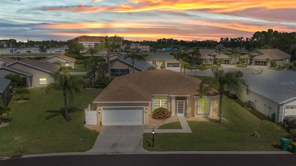 One or more photo(s) has been virtually staged. SENSATIONAL BRISTOL floor plan with UNIQUE KITCHEN FEATURES in the gated golf course/active resort of highly desirable Kings Gate, a 55+ community that is NOT in a flood zone and in evacuation zone d (have never been under evacuation order). This nicely updated home features a 2023 Roof, 2017 AC, 2025 updated kitchen - including slow close cabinets and granite counters and also features an Island (not typically found in a Bristol model). Also newly installed luxury vinyl plank in living room, dining room and all 3 bedrooms. This house also features storm protection with accordion shutters and has a lanai that's enclosed with acrylic windows. Step into this home and you'll instantly notice the new flooring and appreciate the easy flow between living room - dining room - kitchen and lanai. Plenty of open space in back of lanai - (can not be built on). The split floor plan has the master bedroom to the back right of the home with the guest bedrooms/bathroom to the back left - providing both you and your guests plenty of privacy. No question though - you're going to love the view and the cool breeze on the lanai with your morning cup of coffee or your favorite after dinner drink. And if you haven't been to Kings Gate before - you're going to love the options for activity (Olympic size heated swimming pool and spa, tennis courts, pickle ball, lawn bowling, shuffle board, bocce, horseshoes, gym, billiards, library, euchre, bingo, bridge, Texas hold em, poker, mahjong and more). The onsite AND NEWLY REMODELED Lions Den restaurant and bar is super convenient and also offers Tuesday night Karaoke and monthly trivia contests. Many residents love the fact that they are just a golf cart ride away from the shopping plaza that provides you access to grocery store (ALDI), drug store, bank, restaurants and shopping. Want to explore outside of Kings Gate – you are minutes away from the restaurants and shops of downtown Punta Gorda and Fisherman's village. And if you want to explore more of Florida's fun spots you’re near I75 to quickly head north or south. A SENSATIONAL home that is updated - with a great lanai view in a PREMIER gated community needs to be experienced. Call today for a private showing and a golf cart tour of the community/amenities.