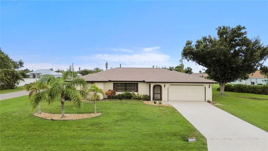 Under contract-accepting backup offers. Set on a desirable corner lot in the Gulf Cove community, this well-maintained 3-bedroom, 2-bathroom home offers 1,761 sq ft of living space and a smart layout filled with natural light. The home is located in a voluntary HOA neighborhood with private access to a park and boat ramp, making it ideal for those who enjoy Florida’s outdoor lifestyle without the burden of mandatory fees. Inside, you’ll find a spacious living area, split-bedroom floor plan, and a centrally located kitchen featuring a convenient pass-through window to the enclosed lanai — perfect for entertaining or relaxing mornings. Just beyond the lanai, a large concrete patio provides ample room for outdoor dining or customizing your backyard space. The primary suite offers a walk-in closet and private bath, while the two guest bedrooms are generously sized with easy access to the second full bathroom. Additional features include a dedicated laundry room, 2-car garage with workshop space, and recent major updates including a new roof in 2022 and A/C replacement in 2018. Located just 15 minutes from Englewood Beach and Manasota Key, and 20 minutes to Boca Grande, this home offers both comfort and convenience. The vacant lot next door is also available for purchase, offering a unique opportunity to expand or invest. Whether you’re looking for a move-in ready home or a property to personalize and make your own, the opportunity is here. The vacant parcel of land to the right of the home is also available for purchase — a rare chance to expand your space or invest for the future.