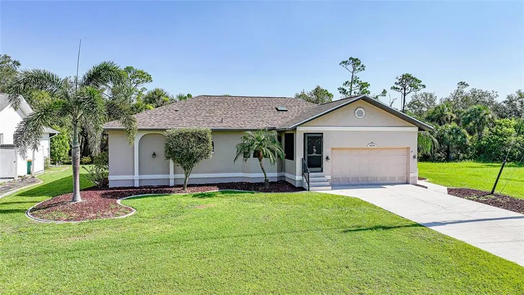 Under contract-accepting backup offers. Welcome to your slice of paradise in the highly sought-after community of Burnt Store Lakes! This 3-bedroom, 2-bathroom home offers 1,671 square feet of thoughtfully designed living space, combining comfort, style, and functionality. Step inside to find a light-filled interior featuring a skylight that brightens the main living area and a kitchen that overlooks the spacious living room, creating a seamless flow for entertaining or everyday living. The kitchen also offers a cozy dining space, perfect for casual meals or morning coffee with a view of the lush outdoors. Enjoy year-round peace of mind with impact-resistant windows and sliders throughout, and a roof replaced in 2022. The home is surrounded by beautiful, mature landscaping that adds privacy, curb appeal, and a touch of Florida charm. The southern rear exposure provides all-day sun—ideal for future outdoor upgrades like a pool or extended lanai. Situated on a generously sized lot with public utilities (city water and sewer), this home sits in a tranquil, deed-restricted neighborhood known for its serene lakes, natural beauty, and proximity to Charlotte Harbor and Burnt Store Marina. Whether you're looking for a full-time residence or seasonal retreat, this well-maintained home offers the perfect blend of features and location. Come see it for yourself—schedule your private showing today!