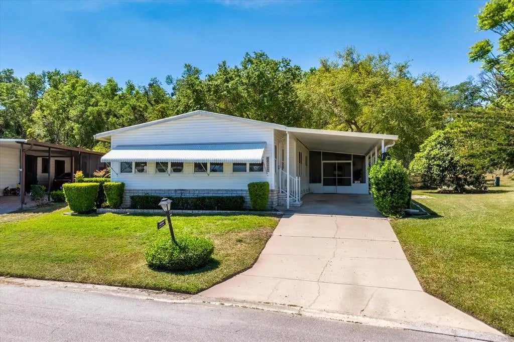 Under contract-accepting backup offers. Back on the market and price decreased. (Buyer's home sale contingency fell through). Welcome to the incredible 55+ community of Zellwood Station, where this spotlessly kept double-wide home offers a perfect blend of comfort and convenience. Featuring two spacious bedrooms and two bathrooms, this home includes cathedral ceilings, a charming built-in hutch in the dining area, and an extra-large family room that provides ample space for relaxing or entertaining. A highlight of the home is the expansive Florida room, complete with hurricane shutters. This home is a peaceful retreat with views of the serene conservation area—ensuring no rear neighbors for added privacy. Additionally, the attached shed/workshop is perfect for hobbies or extra storage. Located in the co-op section of Zellwood Station, there is no lot rent. This vibrant, gated community spans over 800 acres and offers 24-hour security, an 18-hole golf course, a clubhouse, and four swimming pools. Residents can also enjoy the on-site Whistle Stop Restaurant, walking and biking trails, shuffleboard, event lawns, and three stocked fishing lakes. There are too many activities to list, so we have attached them in the documents (including Bingo, Bunco, Ceramics, Euchre, Inside Walking Class, Karaoke, Yoga, just to name a few.) A fitness center, tennis, and pickleball courts complete the extensive list of amenities, making Zellwood Station the perfect place to call home.