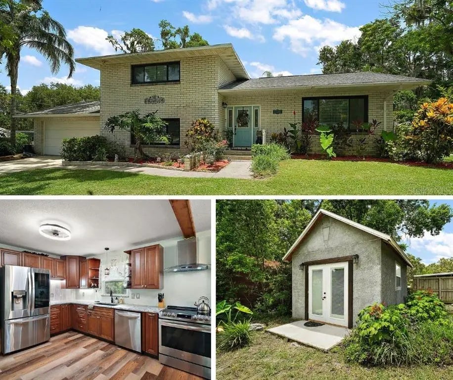 HOME WITH DETACHED OFFICE/GYM! 1 YEAR HOME WARRANTY INCLUDED! This one of a kind split-level gem features 4 bedrooms, 2 full bathrooms with beautiful upgrades and functional living throughout, nestled on an oversized corner lot. Situated in a peaceful community tucked beneath mature oaks in the lakeside town of Yalaha, amongst the Harris Chain of Lakes. Step inside to find new luxury vinyl plank flooring, brand new double-pane windows with transferable warranty, and a fully renovated Kitchen featuring modern quartz countertops, new soft close cabinetry providing ample storage, new stainless steel appliances and exhaust hood. The downstairs layout includes 2 private bedrooms with a tastefully designed tiled walk-in shower and new vanity, conveniently located near the laundry area. Your expansive primary bedroom includes a cozy wood-burning fireplace and plenty of room to relax. The main floor hosts bright living and dining spaces ideal for entertaining, while the 3rd level features 2 more bedrooms and a second bathroom with a tub/shower combo and granite top vanity. Need a dedicated workspace? Enjoy the detached, air-conditioned office with new french doors-perfect for remote work, a studio, or private gym. Enjoy views of the private backyard garden and koi pond from your rear screened patio. Owner has spared no expense with a newer BOSCH HVAC (2023), 2 water heaters (1 tankless), new exterior doors, home is also wired for a whole home generator for peace of mind. This solid built and ENERGY EFFICIENT home combines comfort, function, and style in one inviting package! Side yard offers a Lake-view lifestyle and NO HOA! Enjoy the Lake Harris Chain of lakes from the nearby public boat ramp, just a few miles away. Also located near the famous Yalaha Bakery and the Mission Resort & Club ~ home to 2 championship golf courses, spa, and restaurants; 15 miles to downtown Mount Dora, 10 miles to the Turnpike, and less than an hour to the Orlando airport and major attractions. Call today to schedule your private showing! **ROOF 2019**Check out the 3D home tour (copy/paste): https://www.zillow.com/view-imx/f5d27893-9b59-4683-b26c-92b733918f5b?setAttribution=mls&wl=true&initialViewType=pano&utm_source=dashboard
