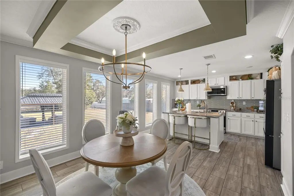 This elegant beautiful 2021 mobile home is a perfect find for various buyers, from first-time homeowners to snowbirds and families desiring a peaceful, spacious living space. Located on a ½-acre fenced lot within a well-maintained community, the property strikes a balance between privacy and convenience. Its location offers easy access to essential amenities and the stunning Ocala National Forest, providing nature enthusiasts with abundant opportunities for hiking, wildlife viewing, and exploration. The home features more than 1,800 square feet of living space, designed with a split-bedroom layout that ensures privacy and comfort. It includes three generously sized bedrooms and two full bathrooms, ideal for families or those who enjoy extra space. The modern, durable luxury vinyl plank flooring adds elegance and ease of maintenance throughout. The kitchen is a chef’s dream with upgraded appliances, plentiful cabinet space, and a central island that facilitates meal preparation. Bright colors and crown molding enhance the overall charm, creating a welcoming atmosphere. The primary bedroom is a spacious sanctuary with a large walk-in closet and an en-suite bathroom that features both a tub and a shower, offering an excellent space to relax. Additional conveniences include a spacious utility and laundry area, designed for efficiency and organization. The newly added gazebo in the backyard provides a tranquil spot for relaxation, complemented by peaceful surroundings. With Ocala National Forest nearby, this property offers nature lovers easy access to outdoor adventures. Whether you are seeking a seasonal retreat, a first home, or a peaceful family residence, this mobile home combines Florida's natural beauty with modern comfort and convenience. This mobile home provides everything you need to enjoy the best of Florida living.