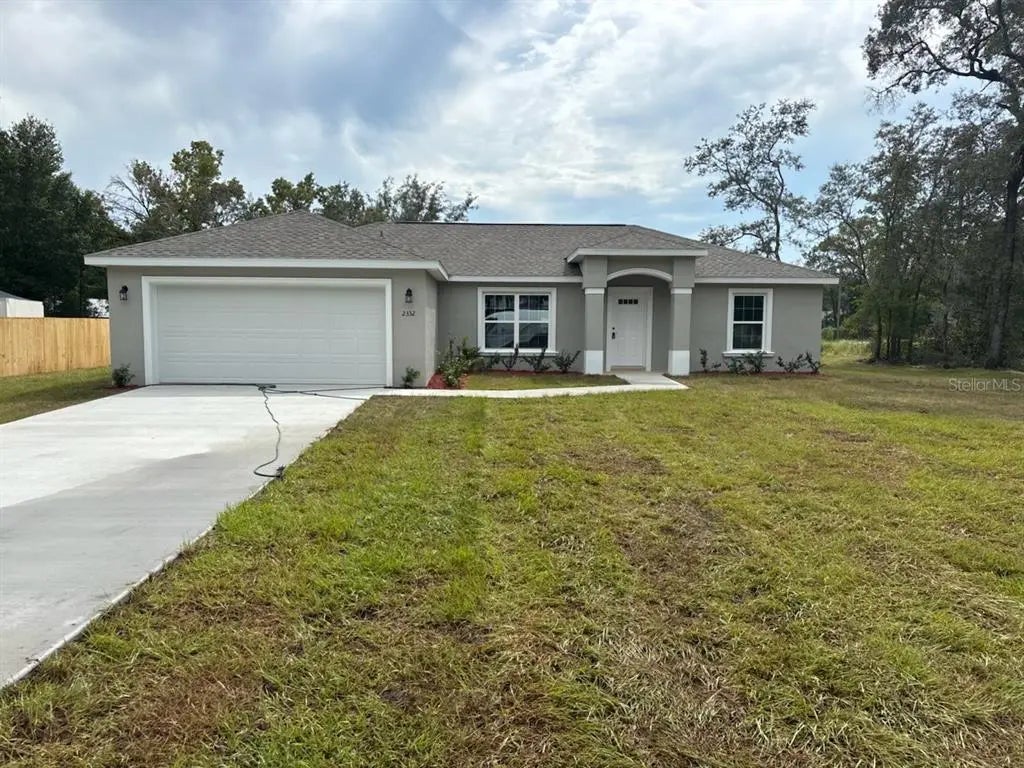 LARGE, CORNER LOT! NEW CONSTRUCTION. MOVE-IN READY! This All New Isla Bella Model offers 3 bedrooms, 2 bathrooms, and 1,530 square feet of comfortable living space on a large corner lot measuring one-third of an acre. The home is built with solid concrete block construction and a 30-year architectural shingle roof for long-lasting durability. Inside, you will find energy-efficient double-pane windows, luxury vinyl plank flooring throughout, and a vaulted ceiling in the living room that adds an open and airy feel. The kitchen is upgraded with a deluxe cabinet package, soft-close drawers, granite countertops, a pantry, and a subway tile backsplash, all complemented by stainless steel appliances. The master suite is thoughtfully designed with a tray ceiling accented by crown molding, a spacious walk-in closet, and a private bathroom featuring two linen closets, a privacy window, and an oversized 5x5 glass-enclosed shower with dual shower heads. The guest bathroom features a tub and shower combination with upgraded, marble-look tile. Additional conveniences include a laundry room with cabinet upgrades, a covered patio for relaxing outdoors, and an attached 2-car garage with opener and remotes. This property comes with a 10-year structural warranty, no HOA fees for freedom, and sits in flood zone X, which is high and dry and does not require flood insurance. The lot also features a privacy fence along the back and left side, making it perfect for both comfort and outdoor enjoyment.