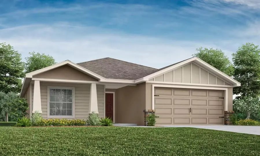 Under Construction. New construction home with 1715 square feet on one-story including 4 bedrooms, 2 baths, and an open living area. Enjoy an open kitchen with Quartz countertops, Samsung stainless steel appliances, a walk-in pantry, and a spacious island, fully open to the dining café and gathering room. The living area, laundry room, and baths include luxury wood vinyl plank flooring, with stain-resistant carpet in the bedrooms. Your owner's suite is complete with a walk-in wardrobe and a private en-suite bath with dual vanities, a tiled shower, and a closeted toilet. Plus, enjoy a covered lanai, 2-car garage, custom-fit window blinds, architectural shingles, energy-efficient insulation and windows, and a full builder warranty ***Please note - Virtual Tour/Photos showcases the home layout; colors and design options in actual home for sale may differ. Furnishings and décor do not convey!