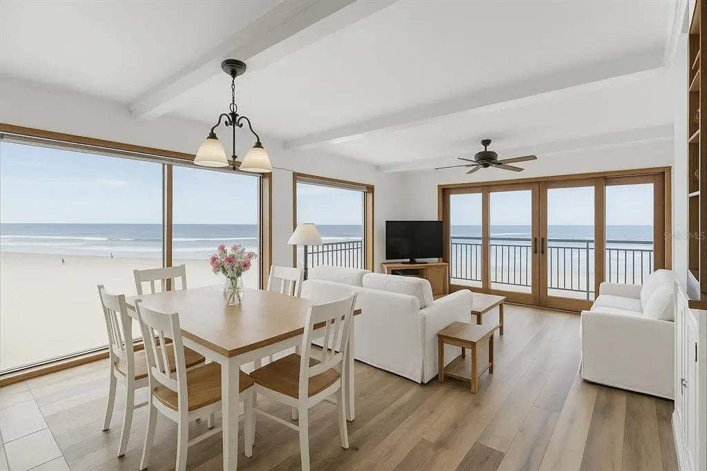 Stunning Oceanfront 3-Bedroom corner unit – Rare Opportunity! Welcome to this exceptional, corner-unit condo located direct oceanfront in the highly sought-after Seaward Condo. With amazing panoramic views of the pristine shoreline, this 3-bedroom, 2-bathroom unit offers an unparalleled living experience where the sound of the waves will be your constant companion. Boasting a spacious, open-concept layout, this fully furnished home is move-in ready. Every detail has been thoughtfully designed to maximize both comfort and style, from the bright and airy living spaces to the well-appointed kitchen. Floor-to-ceiling windows provide breathtaking, unobstructed ocean views, allowing you to soak in the beauty of the beach and waves from every room. The primary suite is a true retreat with its own ocean view and en-suite bathroom, while the two additional bedrooms offer ample space for family or guests. Both bathrooms are modern and meticulously maintained. This rare find is in a building where units rarely come available, making it a highly desirable location. Take advantage of this amazing opportunity to own a piece of paradise in the no drive beach! Don't miss your chance to experience oceanfront living at its finest. Call today for a private showing. First image is a rendering to show potential of unit.
