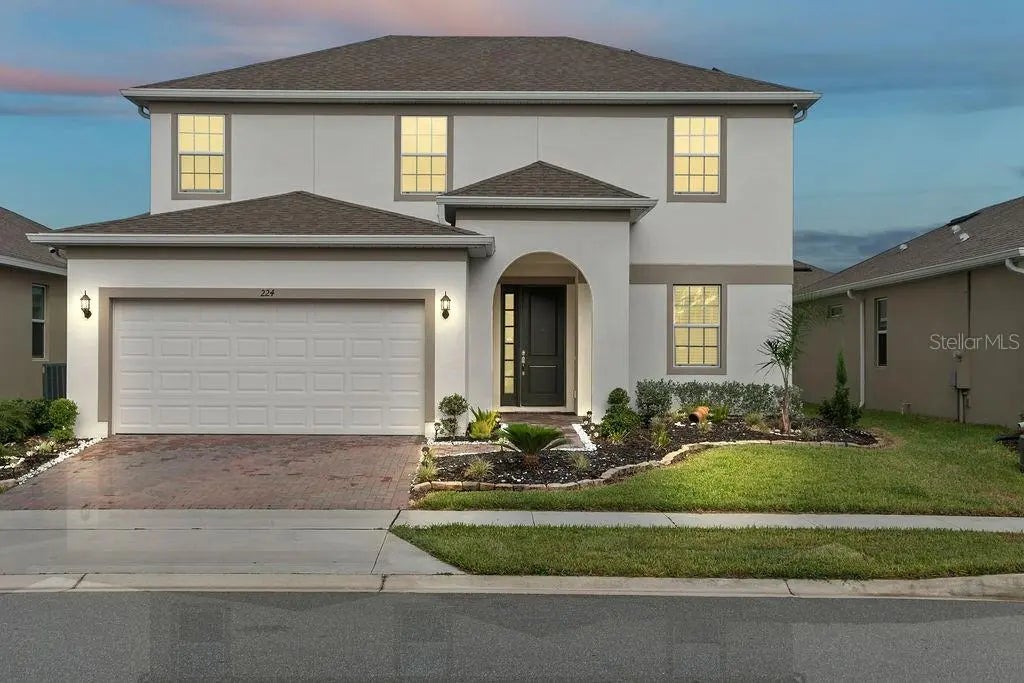 !!Check out this BEAUTIFUL, ENERGY EFFICIENT, two-story home with Solar Panels! Looking from the outside you can see the brick driveway with a matching back porch. Connected to the driveway is a roomy two-car garage, which leads directly inside. Walk through the front door and be greeted by the stairs and a hallway that opens into the beautiful living room and kitchen. The living room features a gray stone accent wall with an area built just for a TV. Throughout the downstairs of the home there is bright and colorful lighting all over the ceilings and in the kitchen. Within the kitchen there are stainless steel appliances, beautiful, stone back splash, dark 42" cabinets, marble counter tops, and beautiful tile floors. In the living room the sliding glass doors open to the brick porch, with a stunning view of the back yard. Also downstairs, you can find one of the four bedrooms, a modern bathroom, and an extra room. Take the stairs and walk up to a spacious common area which connects to the master bedroom, the remaining two bedrooms, and another bathroom. The master bedroom is stunning and features a walk-in closet and a spacious and updated bathroom. This home is close to shopping, restaurants, and Disney Theme Parks!