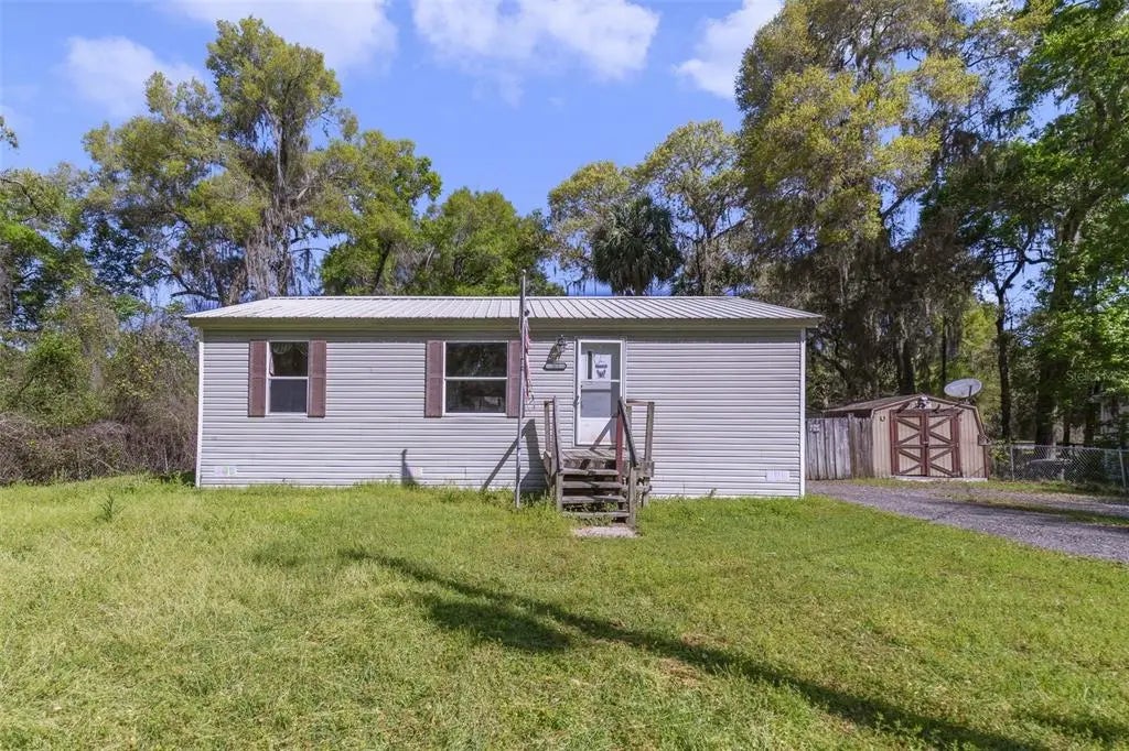 Under contract-accepting backup offers. Short Sale. Back on the Market! Sale fell through due to buyer financing. Spacious Double-Wide Mobile Home – No HOA! This home is nestled on an oversized lot where you own the land—offering privacy and freedom with no HOA restrictions. Featuring 2 bedrooms and 2 bathrooms, this home boasts a bright and open layout with new vinyl flooring throughout—no carpet! The kitchen is fully equipped with a gas stove, refrigerator, and dishwasher, providing everything you need for easy meal prep. Step outside to enjoy the patio deck, perfect for relaxing or entertaining. Additional highlights include a large shed and a carport/workshop, offering ample storage and workspace. A/C replaced in 2020. Conveniently located with easy access to Ocala and Gainesville, this home offers both comfort and convenience. Schedule your showing today!