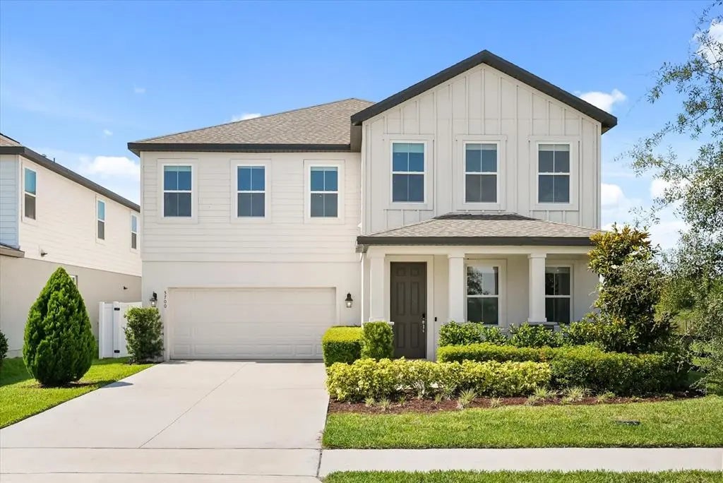 Under contract-accepting backup offers. Welcome to your dream home located in the heart of the vibrant Sunbrooke community. Built in 2022, this stunning 3,000 sq ft corner-lot residence is nestled at the end of a quiet street, offering the ultimate in privacy and comfort. As you step through the front door, you're welcomed by 12-foot ceilings and a calming neutral palette, perfectly complemented by elegant wood-look tile flooring that flows throughout the main level. A stylish bonus room with double glass doors offers the ideal setup for a home office, while the formal dining or sitting area connects seamlessly to a spacious butler’s pantry, creating effortless transitions into the heart of the home. The open-concept kitchen is a true showstopper, featuring bright shaker-style cabinetry, quartz countertops, and modern brass finishes that reflect the natural light flooding in from oversized windows. A conveniently placed powder room for guests is located just before entering the heart of the home, complete with a marble sink and brass accents. The breathtaking living area showcases a 20-foot ceiling and an impressive floor-to-ceiling modern fireplace, creating a warm and luxurious space perfect for entertaining. Upstairs, the upgraded primary suite is a peaceful retreat that features an en-suite bathroom with premium finishes and a generously sized walk-in closet designed for both function and style. Two additional generously sized bedrooms share a thoughtfully designed full bath, and a spacious guest suite that features its own private upgraded bathroom—perfect for visitors or multi-generational living. The upper-level laundry room comes fully equipped with a sleek washer and dryer, adding ease to your daily routine. Step outside into your private, fully fenced backyard oasis. The upgraded paver patio and large pergola offer an inviting setting for al fresco dining or weekend gatherings. Living in Sunbrooke means access to resort-style amenities, including a sparkling community pool, clubhouse, and playground. Just minutes from Lake Nona’s Medical City, top-rated Osceola County schools, major highways, and the scenic East Lake Tohopekaliga, this home blends modern luxury with unbeatable location and lifestyle.
