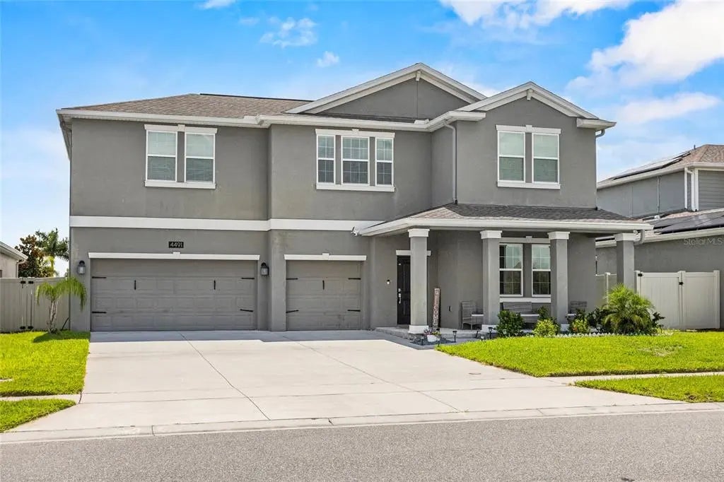 Under contract-accepting backup offers. Welcome to this stunning 5-bedroom, 3.5-bath home with a 3-car garage, located in a solar-powered community that offers both energy efficiency and comfort. With a spacious layout ideal for large families and gatherings, this home blends elegance and functionality throughout. As you enter, you're greeted by a formal dining area, perfect for hosting, followed by a convenient half bath for guests. The heart of the home features a beautiful kitchen with crisp cabinetry, a generously sized pantry, and open views into the living room that overlooks the pool. The primary suite is located downstairs, offering privacy and convenience with a luxurious ensuite bathroom and a custom walk-in closet. Just steps away is a thoughtfully designed laundry room with built-in storage. Step through the sliding glass doors and into your own backyard oasis—a massive pavered pool deck, complete with a lounge area, outdoor kitchen with grill, and minimal grass for easy maintenance fully fenced. Upstairs, you'll find a second living/playroom area, perfect for relaxing or entertaining. The home includes Jack-and-Jill bedrooms with a shared bathroom, in addition to two more spacious bedrooms. Enjoy the benefits of low HOA fees while taking advantage of community amenities. This home truly has it all space, style, and smart energy savings.