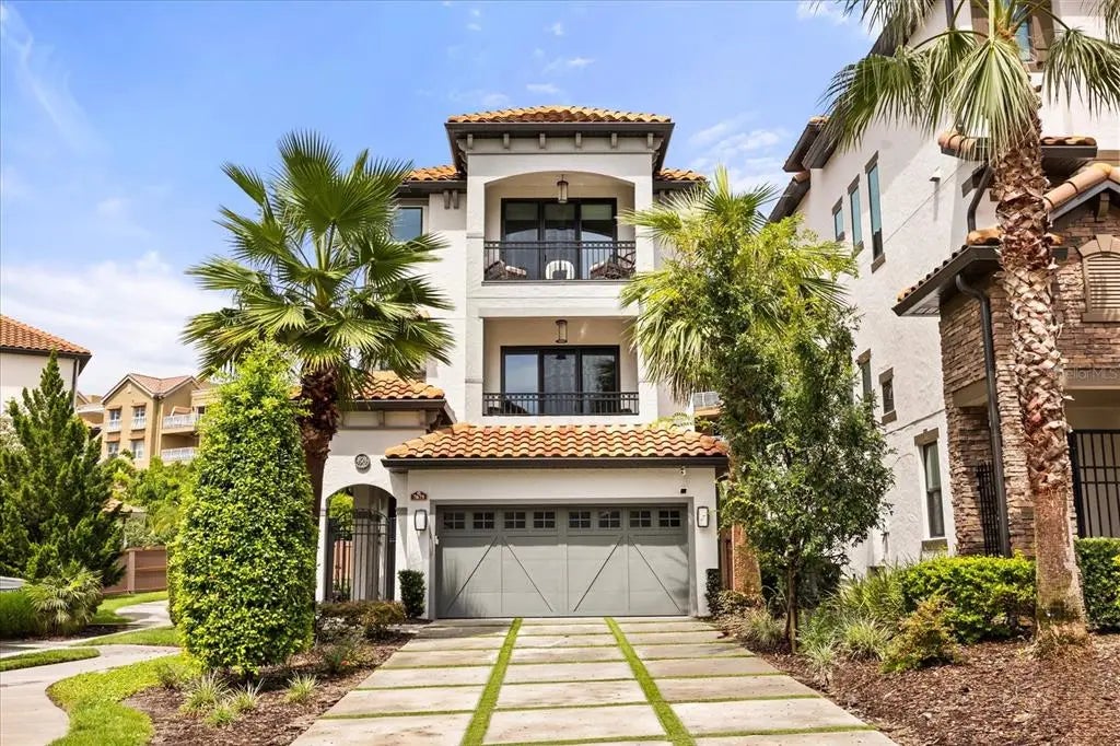 Expect to be impressed with this STUNNING three-story estate home in Lakeside at Toscana, a secure gated community on Spring Lake in desirable Dr. Phillips. The interior design reflects a fresh contemporary look in its features, finishings and color tones, and the floors are connected via both stairs and PRIVATE ELEVATOR. The main common living space is on the second floor and provides WOW factor at every turn. Here your gourmet style kitchen/dining space is open to the living room. The kitchen boasts quartz counters, breakfast bar, island, gas range w/pot filler, abundant cabinetry/pantry space, striking pendant lighting, eat in nook and more formal dining space designed to seat a crowd. Other notable features on this level: electric fireplace, half bath and balcony. The top floor includes three of the four bedrooms. The primary suite is in the front, with a balcony view of Spring Lake and a spot to watch theme park fireworks. Here you’ll enjoy a luxurious ensuite bath w/dual sink vanity, soaker tub & oversized shower w/multiple shower heads. The ground floor is designed as a secondary entertainment spot – a large great room with bar – flexible to arrange as you see fit. There’s also a bedroom and full bath here – ideal for a guest, or perhaps the perfect spot to set up your office. Other notable interior features: quartz counters are also found in the full baths, laundry room and wet bar areas. The ground floor great room provides access to your backyard. Here, you have stylish outdoor entertainment center – open and covered patio space that’s great for dining, relaxing, TV viewing, gathering around the firepit and even doing a little putting! Fencing and bamboo trees provide you with the privacy you’d want when enjoying fun in the sun. Great location - residents of Toscana have access to their community pool and fitness center, and landscaping is taken care of for you. Schools here are top-rated. And you are only a mile to I4, essential shopping venues, and the area’s well-known “Restaurant Row.” Theme park lovers will also appreciate the proximity to Universal Studios, Sea World, and Disney. This is luxury living at its finest – come see all that makes this home so special.