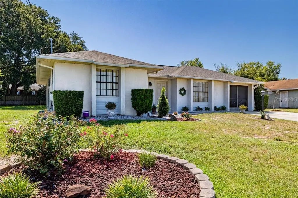 **BRAND NEW ROOF IN JULY 2025**SELLER-PAID HOME WARRANTY INCLUDED** Buyers - ask your agent for full info! Step into your new Meticulously Maintained, Move in Ready, 2-Bedroom, 2-Bathroom home, complete with a fully functional screened garage located in the heart of Deltona. Recent upgrades to this pristine home include a brand-new roof (July 2025), fresh concrete on a large portion of the driveway (July 2025), and tasteful landscaping touches (July 2025), which will ensure peace of mind as well as curb appeal for many years to come. Situated on an elevated ¼ acre lot on a private cul-de-sac, this home offers both comfort, privacy, and convenience with NO HOA restrictions. A spacious front yard welcomes you to this lovely home located just 30 minutes from the beach. Additionally, it’s only a short ride to Orlando and all its world-renowned attractions. Inside this residence you will find two immaculate bedrooms, two spotless full baths, with an ample sized primary suite which includes a brand-new shower with upgraded fixtures and a large walk-in closet. This home also features a combination of low maintenance ceramic tile and laminate flooring throughout the living areas and bathrooms, while the primary bedroom boasts plush carpeting and ceramic tile. The spotless kitchen features a cozy dining nook / living room combo for small or larger groups with a separate front living room for social gatherings and entertainment. The cozy backyard offers a fully screened in patio giving you a comfortable and safe retreat to gather and enjoy the outdoors. It also features a detached shed for additional storage space. This property combines timeless style, functionality, and peace of mind all wrapped in a premier location, making it a true gem. Schedule your showing today and prepare to fall in love with your new home!