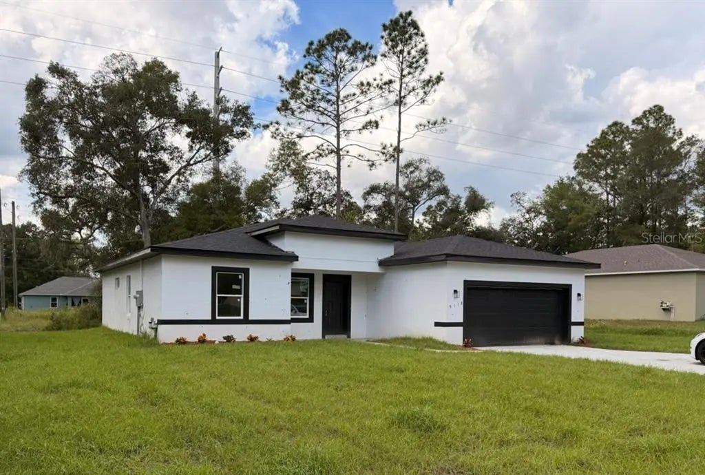 One or more photo(s) have been virtually staged. Brand-New Home in Citrus Springs – Modern Living with Timeless Charm! Step into this stunning new construction that combines contemporary design with everyday functionality. From the welcoming front porch to the beautifully landscaped front yard, every detail has been thoughtfully crafted to impress. This spacious 4-bedroom, 2-bath home offers open-concept living with abundant natural light flowing through large windows and sliding glass doors. The expansive living area creates a warm, inviting atmosphere and flows seamlessly into the outdoor space — ideal for relaxing or entertaining. Enjoy elegant wood-look vinyl flooring throughout, adding durability and style to every room. All bedrooms feature built-in closets for easy organization, while the primary suite offers a generous walk-in closet and a luxurious bathroom complete with dual sinks and a freestanding soaking tub — your own private retreat. The kitchen is a true showstopper, boasting quartz countertops, contemporary cabinetry, and quality appliances — ready for your culinary creations. The adjacent laundry room is conveniently located and designed to maximize functionality. Additional highlights include a 2-car garage with an automatic door for comfort and security, and a 1-year builder's warranty that offers peace of mind. Located in a growing and desirable area of Citrus Springs, you’ll be minutes away from parks, schools, shops, and more. Don’t miss your chance to own this beautiful new home. Contact us today to schedule your private showing!