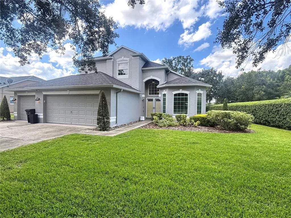 Enjoy lakefront living in this beautiful two-story home set within a desirable gated community. Situated on nearly half an acre with generous lake frontage, the property offers stunning sunset views and direct access for small watercraft such as kayaks, canoes, or paddle boards. The open floor plan with vaulted ceilings is ideal for family living and entertaining, featuring a primary suite on the main level, three additional bedrooms upstairs, and a versatile flex space that can easily serve as a fifth bedroom. A spacious three-car garage provides plenty of room for vehicles, storage, or even a boat, while a full irrigation system maintains the grounds. The community also includes a playground and is conveniently located near shopping, dining, and major highways, making this home the perfect blend of comfort, convenience, and waterfront charm. Act now! This one won't last long! All applicants are required to do a credit and background check. Renters insurance is required.