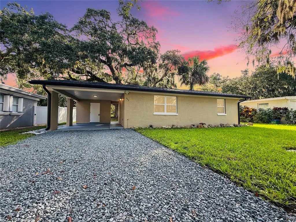 TOP-TO-BOTTOM TOTAL REMODEL - MOVE-IN READY! This beautifully updated 2 Bedroom, 1 Bathroom home with Carport has been completely transformed with NEW ROOF, NEW WATER HEATER, NEW HVAC, NEW WINDOWS, and NEW GUTTERS—all the big-ticket items are DONE! Inside, enjoy brand-new flooring throughout paired with stylish modern finishes. The kitchen boasts stunning granite countertops with matching backsplash and top-of-the-line LG ThinQ stainless steel appliances featuring green smart tech efficiency, making it both luxurious and eco-friendly. The remodeled bathroom feels like a spa, offering a glass-enclosed shower, Bluetooth speaker, and anti-fog color-changing mirror. Additional features include new fans with remote features, upgraded lighting, fresh interior & exterior paint, and new exterior security lights for safety and convenience. Outdoor living is enhanced with new pavers, a covered carport, and a spacious 60x105 lot, perfect for entertaining, gardening, or simply enjoying Florida Living. This property blends modern finishes, eco-conscious technology, and a full top-to-bottom remodel, making it the perfect turnkey home! Call for private tour.