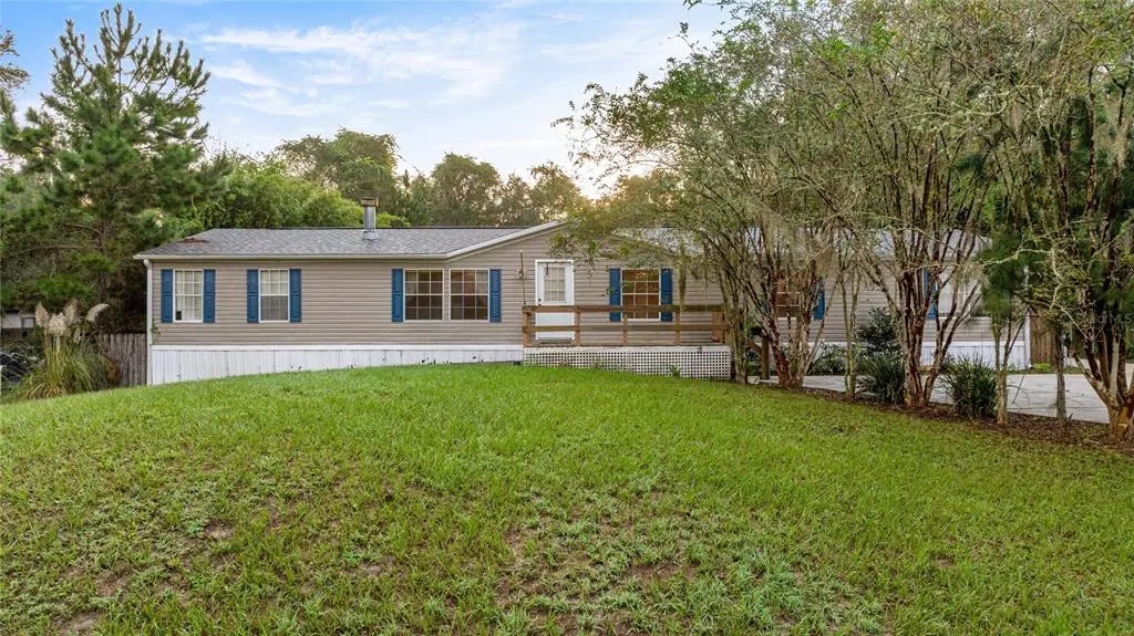 Don’t miss this exceptionally well-maintained 2004 manufactured home, perfectly situated on a paved road with a concrete driveway on a spacious 0.51-acre lot. This beautiful split-floor plan offers 2,280 sq. ft. of living space, featuring 4 bedrooms, 2 bathrooms, and a bonus/game room complete with a wet bar — ideal for a pool table, game space, or an impressive home theater. Upon entering, you’ll be greeted by cathedral ceilings, crown molding, and a cozy, wood-burning stacked-stone fireplace that anchors the spacious living room. The dining area flows seamlessly into a large kitchen boasting abundant countertop space, ample cabinetry, with all kitchen appliances included. The primary suite offers generous space with large walk-in closet, an ensuite bath featuring a garden tub. A large open area with a built-in desk and extra storage leads to the guest bedrooms, which are comfortably sized and share a full bath with a tub/shower combo. From the dining room, step into the 10' x 15' screened porch, perfect for relaxing while overlooking the above-ground pool (new pump and top railing installed in 2020).