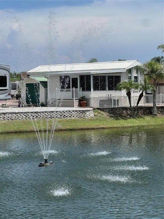 ~Big O RV Resort~55+. Active Lifestyles in a gated community, One owner custom made Chariot Park model with a custom Sunroom (Hurricane wind rated) by one of the best builders around the lake! 1B 1.5 Baths (Could be a 2 bedroom) Located on a lake with a water view w/ a fountain! Tastefully furnished & flooring by Jeanettes Interiors. Custom Blinds & all windows are tinted. 8X8 Wooly shed w/ electric & AC. Gorgeous patio fenced in for your fur baby overlooking the water. Custom Hurricane shutters. Pavers & steps to water. Nice glass front storm door. Wired for a generator. Bring the hubby & boat for good times! New casino 25 minutes away- shopping and restaurants nearby. Boat ramp in the park. Heated pool,