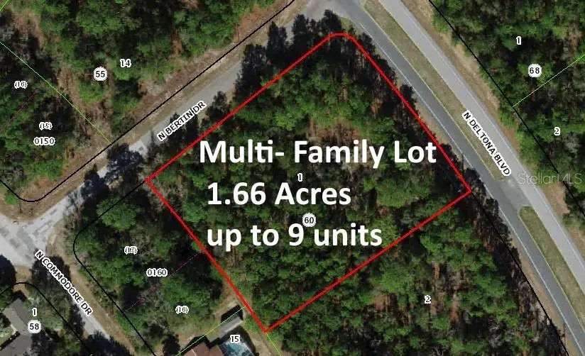 Rear Gem, Multifamily corner lot with that touches Deltona so it has public water and wastewater. With the public water and wastewater, you can build six units per acre, so nine units on this 1.66 acre lot. Call Citrus planning and zoning to confirm. Citrus springs is a deed restricted community with out an HOA. There is a voluntary social membership. This lot is conveniently located down the road from the Family Dollar and Dollar General Stores, about five miles to Publix, and six miles to Walmart. It is about 30 minutes to the heart of Ocala and about an hour and a half to to the heart of Tampa.