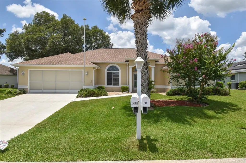 Under contract-accepting backup offers. JUST REDUCED FOR QUICK SALE!!! SPECTACULAR POOL HOUSE ON THE GOLF COURSE! Enjoy the mature landscaping leading to the house with the tile entrance and the new front door. The living and dining rooms also have tile wood-like floors and have a beautiful view of the pool area and the golf course. The living room has room for a large, screened television. The wall between the living room and kitchen can be moved to create an open floor plan. The kitchen has a built in microwave, time-saving dishwasher, refrigerator and a clear top range. The kitchen has an eat-in area for enjoying morning coffee. The kitchen has a great view of the golf course from the kitchen window. The laundry room is located right off of the kitchen for easy access to the garage for carrying in groceries. The Master Bedroom has new carpet and has recently been painted with a walk-in closet. The Master Bathroom has been remodeled with a new walk-in shower, new double sink vanity with plenty of storage, new faucets and fixtures. The two bedrooms have built-in closets; one with a view of the golf course. The guest bathroom has also been remodeled with a new sink, new vanity with plenty of storage, new walk-in shower and a linen closet, The Florida room has ceiling fans, vinyl windows for year-round comfort and an outstanding view of the pool and golf course. This house is priced to sell! Ocala Palms offers a pristine golf course, indoor and outdoor pools, and fitness center. Situated in a prime location, this home is just a short drive from the World Equestrian Center (WEC) and nearby shopping and restaurants are just across the street. Embrace the vibrant lifestyle and numerous amenities that Ocala Palms has to offer in this exceptional home. All measurements are approximate. Buyer(s) to re-measure.