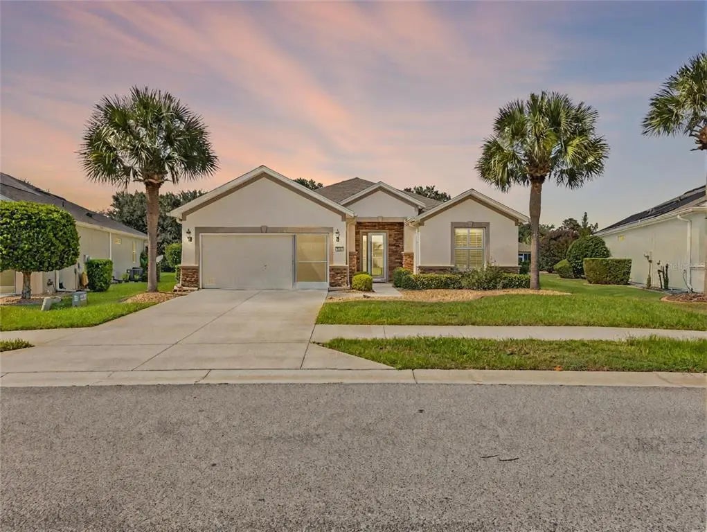 This delightful Sheridan model is situated in the charming community of Stone Creek by DEL WEBB. The residence boasts 3 bedrooms, 2 bathrooms, and a 2-car garage. You'll be immediately drawn to the impeccable curb appeal, featuring upgraded landscaping, palm trees, hardscape, and stunning stone accents. Upon entering, you'll be greeted by a glass storm door and a glass insert front door with internal adjustable blinds. Inside, you'll find plantation shutters, ceiling fans, and elegant laminate wood flooring throughout, with the exception of the kitchen, bathrooms, and laundry room, which feature lovely ceramic tile. The kitchen is a highlight of the home, showcasing new, high-quality quartz countertops and a quartz backsplash, upgraded cabinets, pendant lighting, and stainless steel appliances, including a new refrigerator in 2022. Other notable features include a new roof installed in 2022, a new A/C system installed in 2020, a new water heater installed in 2021, five solar tubes for natural lighting, and a new washer and dryer installed in 2023. You can relax and unwind on the enclosed lanai, which has both heating and cooling options. The large private backyard is fenced in and has upgraded landscaping. The garage is also heated and cooled and has a sliding screen door. Don't miss the chance to see this home, schedule a showing today before it's gone.