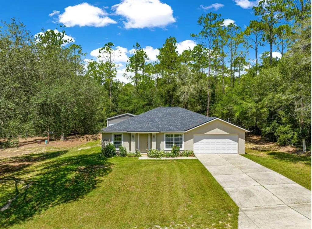 Enjoy spacious, comfortable living in the heart of Citrus Springs on a generous 0.52-acre corner lot in a desirable No HOA community. This 3-bedroom, 2-bath 1,534 sqft home features an attached 2-car garage and a large living room with vaulted ceilings, flowing seamlessly into a kitchen with two pantries, ample cabinet space and a breakfast bar. The primary suite is conveniently located off the kitchen and includes a walk-in closet and en-suite bathroom with a separate shower. The split floor plan provides privacy for guests, with two additional bedrooms on the opposite side of the home and a full guest bathroom situated between them. Outdoor living is enhanced by a covered back porch, a large concrete patio area perfect for entertaining or relaxing with beautiful landscaping including banana trees, creating a private and serene environment. A detached 24 x 25 garage/workshop built in 2021, features a loft for storage, 200amp panel and dedicated solar panels installed in 2022. This home is conveniently located near shopping, restaurants and everyday amenities will still just a short drive to the Gulf Coast for fishing, boating & snorkeling adventures. The roof was replaced in 2024 and a 1-year home warranty will be included at closing, providing added peace of mind. With thoughtful design, energy-efficient features and functional living spaces, this property is ideal for families or anyone seeking convenience, and flexibility in a prime Citrus Springs location. Schedule your private showing today!