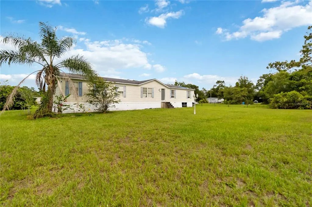 "New Roof" 1 YEAR HOME WARRANTY INCLUDED!! Escape to tranquility in Holopaw! This charming 4-bedroom, 2-bath manufactured home is a peaceful country retreat that combines rustic comfort with modern convenience. Step inside to discover warm wood laminate flooring and a spacious, open layout perfect for family living or weekend getaways. Whether you're sipping coffee by the wood-burning fireplace or stretching out on your 0.8-acre slice of paradise, this property invites you to relax, breathe, and feel at home. The kitchen comes equipped with a range and refrigerator, making it move-in ready. Cathedral ceilings, walk-in closets, and sliding doors add to the bright and airy feel throughout. With no CDD and no HOA restrictions, you have the freedom to make this home truly your own. On well and septic, this property offers self-sufficient country living at its finest. Conveniently located just 45 minutes from Melbourne Beach, you can enjoy coastal getaways while still embracing the quiet, rural lifestyle. Whether you're searching for a forever home or a weekend escape, this property delivers the best of peaceful country living with room to roam and breathe. A brand new roof was installed in July 2025 and includes a transferable warranty for long-term peace of mind.