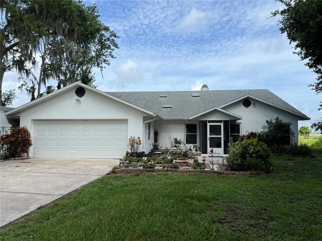 Welcome to this one-owner lakefront home on Lake Toho that has been meticulously maintained! Travel down the grassy, cypress-tree lined driveway until it opens up to the inviting and beautifully landscaped front yard and the house. Enter the home through the screened front porch and see the spacious kitchen on your left. All appliances will stay, including the gas range, washer, and dryer. There are lots of wood cabinets, a built-in desk, a high breakfast bar by the sink, and an attached dining room table with storage below. The home features an open floor plan, with plenty of skylights throughout, to really let in the light. There is a gas fireplace in the living room. The living room opens through the triple sliding glass doors to the Florida room with Oh, What a view! Lake Toho! Wildlife, birds and bunnies abound. On either side of the Florida room are rooms that now serve as an office and a TV room, but could easily be converted to bedrooms if needed. There are four bedrooms, one has an electric fireplace. Two bedrooms have walk-in closets (one with cedar walls), one bedroom has French doors. There are two full baths, one on each side of the house, and there is another full bath in the garage. Drop-down stairs attic access is in the garage, and also in the cedar closet. There is a Whole House Fan which can keep you cool several months of the year, saving on AC bills. The roof was replaced 3 years ago. There is a canal on the north side of the property that leads to a small boat basin, just needs a little weed clean-up. The yard has space for your RV, boat, whatever big toys you have. Come home to quieter times and live on the lake!