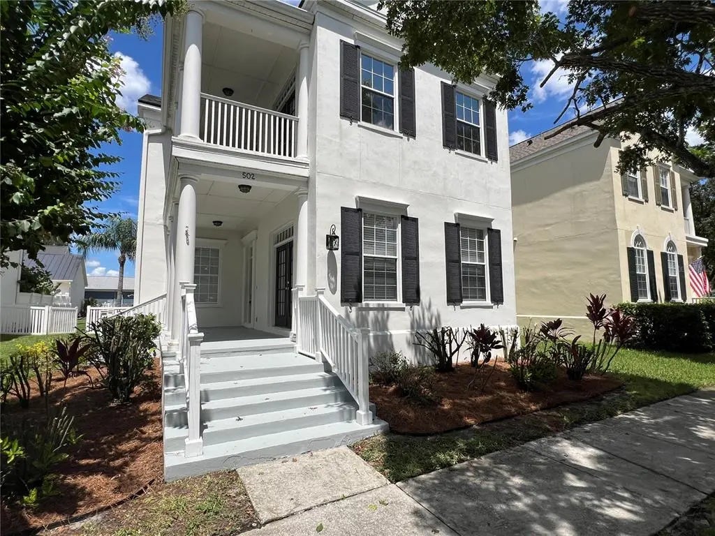 Immaculate, popular Charleston side row style home with formal living and dining rooms featuring crown molding and wood floors, kitchen amenities include pantry as well as an eat-in area. Over sized secondary bedroom with access to outdoor and floor balcony. Bonus room and great room provide lots of space for family entertainment. Enjoy evenings on the front porch or the rear, screened patio fenced yard for privacy. Great location across from Celebration's A-rated K-8 school and just steps to downtown restaurants, shops, walking trails, pool, and more!