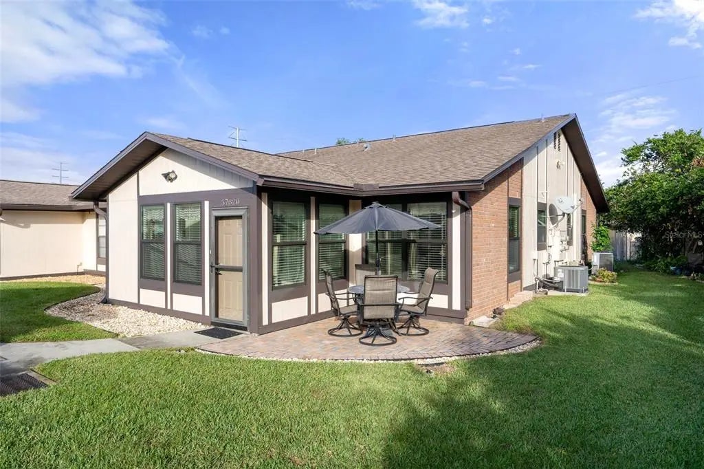 Under contract-accepting backup offers. Picture Perfect - Turnkey 2 Bedroom, 2 Bathroom Condo in Beautiful Gated 55+ Orange Blossom Ranch. This light filled corner home comes fully furnished and nicely equipped. As you enter the home through the spacious Florida room, you'll notice how open and bright the home feels. A truly open floorplan with the spacious living room flowing into the updated kitchen with lots of cabinetry, quartz countertops and a sunny window looking out at the backyard. There's a huge pantry in the dining area. A hallway takes you to the primary bedroom suite, featuring a very large bedroom and spacious bathroom. The second bedroom has a sliding door leading out to the Florida Room, and the hall bathroom includes a large closet and laundry area. Outside a large paver patio is ready for visitors with a table, chairs and large umbrella for shade. The home comes with an assigned covered carport and a guest parking area. Recent updates include new double pane windows, new roof, updated kitchen countertops and newer flooring throughout. The fees are $353.53 per month, which includes lawn maintenance, roof replacement, garbage pickup, recreation center, heated pool, and shuffleboard. Come enjoy the sunny Florida lifestyle.