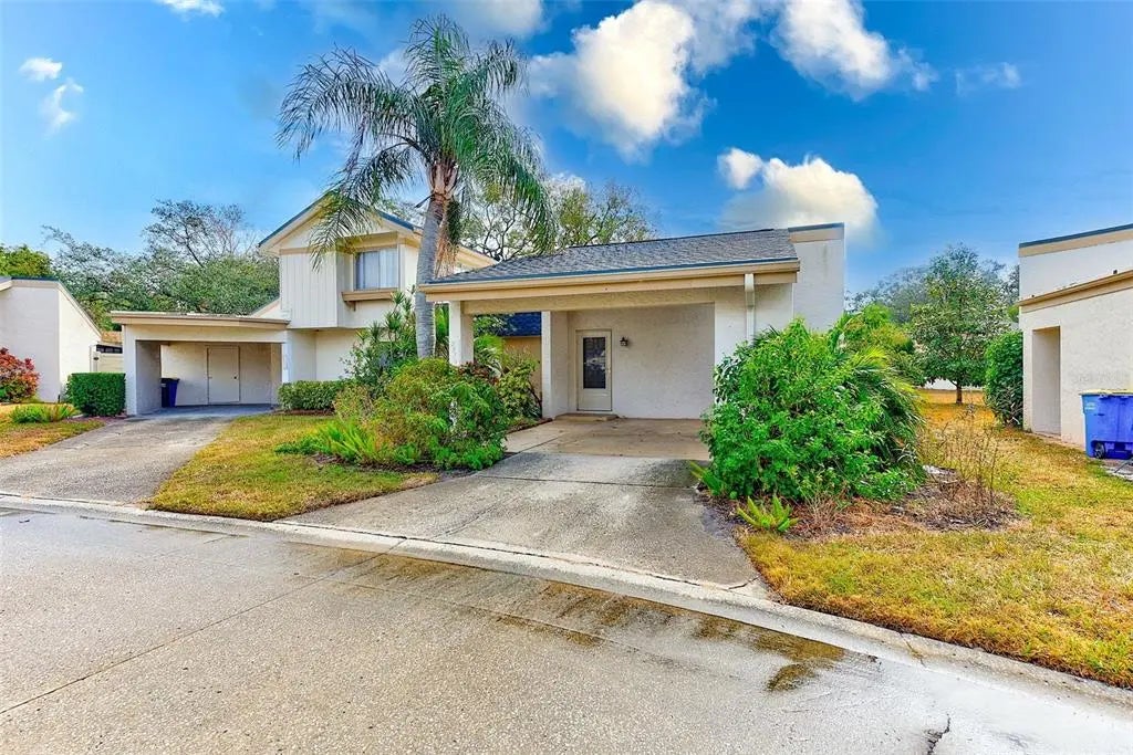 Under contract-accepting backup offers. Welcome to this beautifully refreshed 3-bedroom, 2-bathroom gem nestled in the heart of Countryside! This villa-style condo features 1,145 square feet of living space. Freshly painted walls and brand-new carpeting in the bedrooms create a clean, move-in-ready palette for your personal touch. The living room with vaulted ceiling exudes a bright, airy, and inviting feel. The natural wood-tone kitchen is a true highlight, offering granite countertops, spacious work flow and plenty of cabinetry. A full-size washer and dryer are conveniently tucked away in a laundry closet. The home also boasts an attached carport with a storage closet for added convenience. Step outside to your private, covered, and screened patio, complete with privacy fencing—a perfect spot for relaxing or entertaining. This property is situated on a quiet cul-de-sac with adequate guest parking and open green space. Winding Wood is a pet-friendly community located in a no flood and non-evacuation zone. Included in the monthly HOA fee are all exterior maintenance services, including building, roof, pest and termite control, fencing, exterior painting, building insurance, cable, internet, and access to a sparkling heated community pool. Outdoor enthusiasts will love being just minutes away from the newest section of the Pinellas Trail, ideal for walking, jogging, or biking. Enjoy the unbeatable Clearwater location near shopping, dining, entertainment, two airports and top destinations such as Honeymoon Island, Clearwater Beach, Caladesi Island, Downtown Dunedin & Safety Harbor! Don’t miss the opportunity to make this your home- schedule your private showing today!