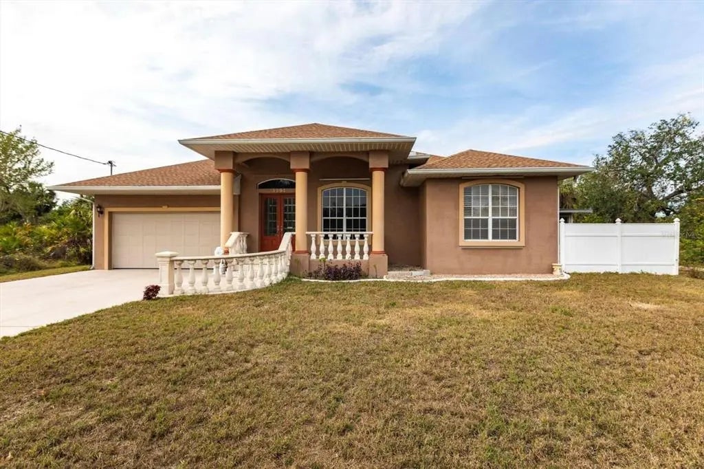 Welcome to the waterfront lifestyle at this sailboat canal-front pool home with dock and Gulf access! You won't find another like it. This is a custom designed home with a spacious split-floor plan. The large elevated front porch leads into a breathtaking foyer bosting 13ft. ceilings to welcome visitors and family alike. At over 2,200 square feet & 9 ½ ft. ceilings throughout main living areas, this beautiful home has three separated bedrooms each having an en-suite bath and walk-in closet. A large living room will bring your family together for camaraderie or just watching your favorite show. A separate formal dining room with outdoor access is ready for entertaining or a quiet dinner in. Sliding doors from the dining room lead to a lengthy dog-run any furry friend will enjoy! The kitchen features floor-to-ceiling cabinets, beautiful granite counters, decorative backsplash, and a large breakfast bar amongst many other features. The family room has triple pocket sliders providing direct access and beautiful view to the enormous screened pool area and covered patio oriented for picture perfect sunsets. You will have a hard time finding a larger pool deck for entertaining. This home is stem wall construction, newer garage door, hot water tank, and A/C. New roof completed 2025! This home offers a perfect atmosphere for hosting your next holiday celebration or simply enjoying quality time with family. Owner financing possible. The quiet neighborhood is close to shopping and dining, and the Charlotte Sports Park. Approximately 1/2 hour to the areas of Englewood Beach, Stump Pass Beach, and Gasparilla Beach. Fifteen minutes to Historic Downtown Punta Gorda, Fisherman's Village, and the brand new premium Sunseeker Resort.