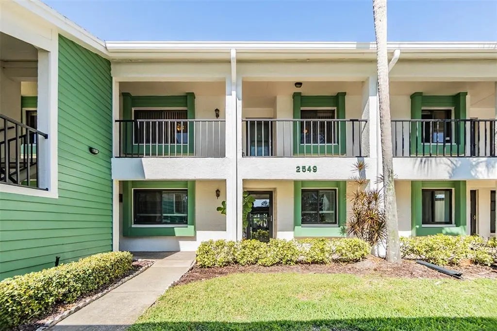 Under contract-accepting backup offers. Here's your opportunity to own this, move in ready 2 bed, 2 bath condo situated in the 55+ community of Village on the Green. Located on the second floor, the open floor plan allows for easy movement and a welcoming atmosphere. The two bedrooms are well-sized, with the master bedroom featuring an en-suite bathroom for added privacy. An interior laundry room adds convenience. The rear screened in patio is the perfect place to enjoy your morning coffee, relaxing or just simply taking in the sounds of nature. The condo is move-in ready, with most furnishings available making it a smooth transition for the new owner. The pride in ownership is evident in the well-maintained condition of the home showcasing how well the home has been cared for. New electrical panel 2025, roof 2025, A/C unit 2020. This community is high and dry and unaffected by the last hurricanes. Moreover, as a two-story structure, is exempt from milestone inspections.
