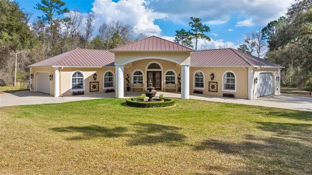 Welcome to your dream estate! Nestled on a sprawling 7.1-acre lot, this magnificent property offers unparalleled privacy and luxury. Enter through the closed circuit gated entrance and follow the circular drive to the elegant portico. The estate features a serene spring-fed pond with "resident swans" and trails throughout the woods, perfect for nature lovers. With 5105 sq. ft. of living space, the open floor plan seamlessly integrates the living, dining, and billiard areas, creating an ideal setting for entertaining. The beautiful kitchen is a chef's delight, boasting a gas range and abundant cabinetry. The two-room primary suite includes a luxurious bath. The versatile guest suite doubles as a studio, equipped with a Murphy bed, kitchenette, and dressing room, offering a private entrance for added convenience. For your peace of mind, the home and property are equipped with hardwired security cameras. The oversized two-car garage includes a charging station, storage cabinets, and space for a golf cart. Plus, you'll never lose power with the whole house Generac generator. This estate is a rare find, combining luxury, privacy, and modern amenities in a picturesque setting. Don't miss the opportunity to make it yours!