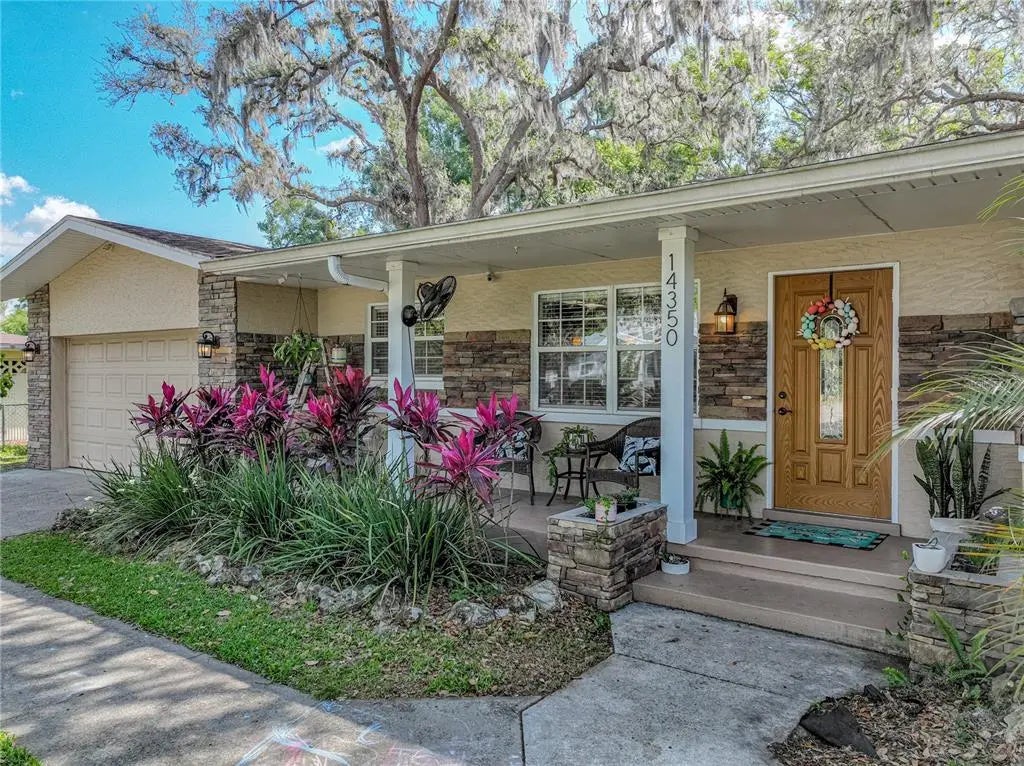 bath, 2 garage home warmly welcomes you with mature oak trees, lush landscaping, a