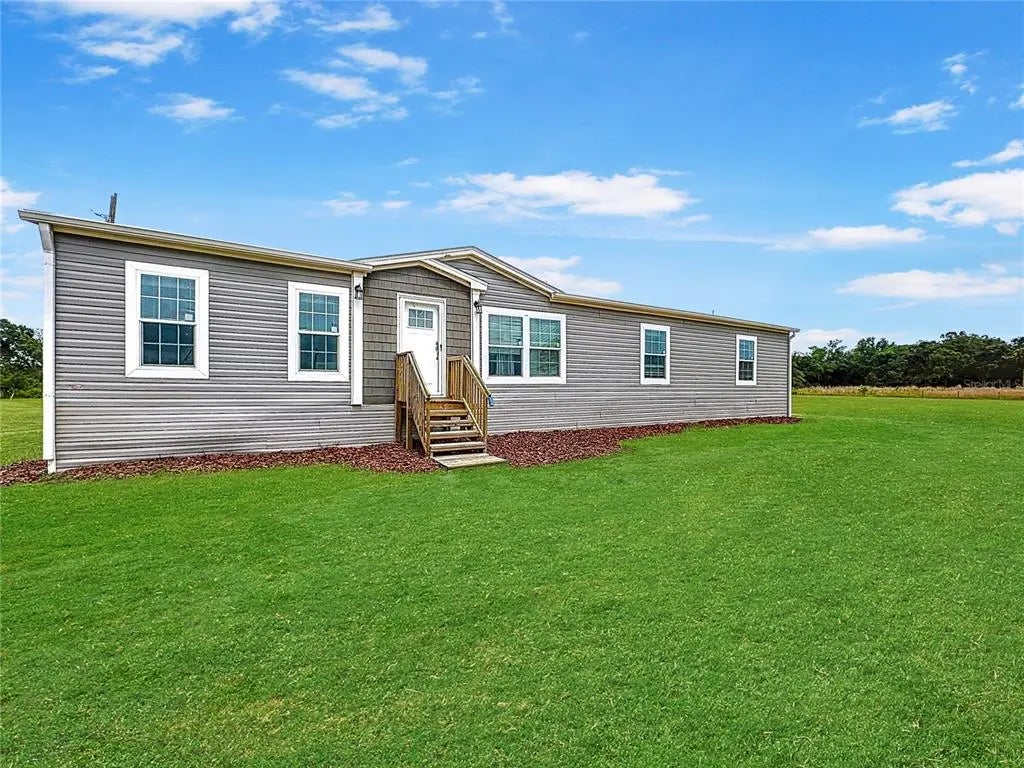 This peaceful 13.75-acre property offers seclusion and wide-open spaces with a private 50-foot access drive leading to a modern 2023 4 bedroom, 2 bath modular home. With 2,176 square feet of crafted living space, the home features an open floor plan, high-end kitchen finishes, and a spacious primary suite with shiplap, a walk-in shower and soaking tub. The guest bathroom has dual sinks with a comfortable counter height and lower toilet for families. The land is fully fenced and ideal for livestock or horses, with A10C zoning and improved pasture known for its rich, fertile soil. The property includes an 18x32 utility shed with a roll-up door, paver foundation, and covered awning, plus the property has three-phase power, perfect for heavy equipment or a large workshop. Additional features include 2 cattle fences, round holding pen, hay bale feeder, upgraded macerator pump septic system, and a full-home water softener. Located just north of SR 50 with convenient access to I-75, the Florida Turnpike, and SR 471, this property offers rural living with easy commutes to Tampa, Orlando, and surrounding counties. Whether you're looking to start a small ranch, raise animals, or enjoy peaceful country life with no HOA, this move-in ready home has it all. This property has style and comfort for any lifestyle, perfect for livestock, horses, and peaceful country living.