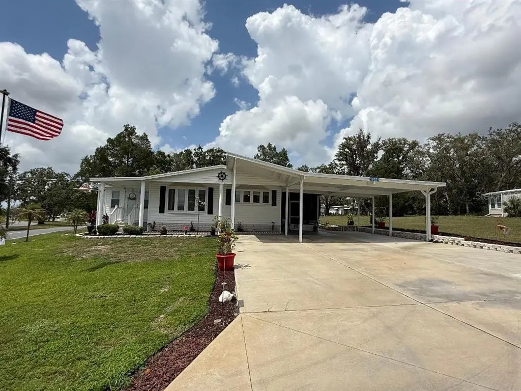 Attached extended carport that leads to a screened lanai and both a workshop and a one-car garage.