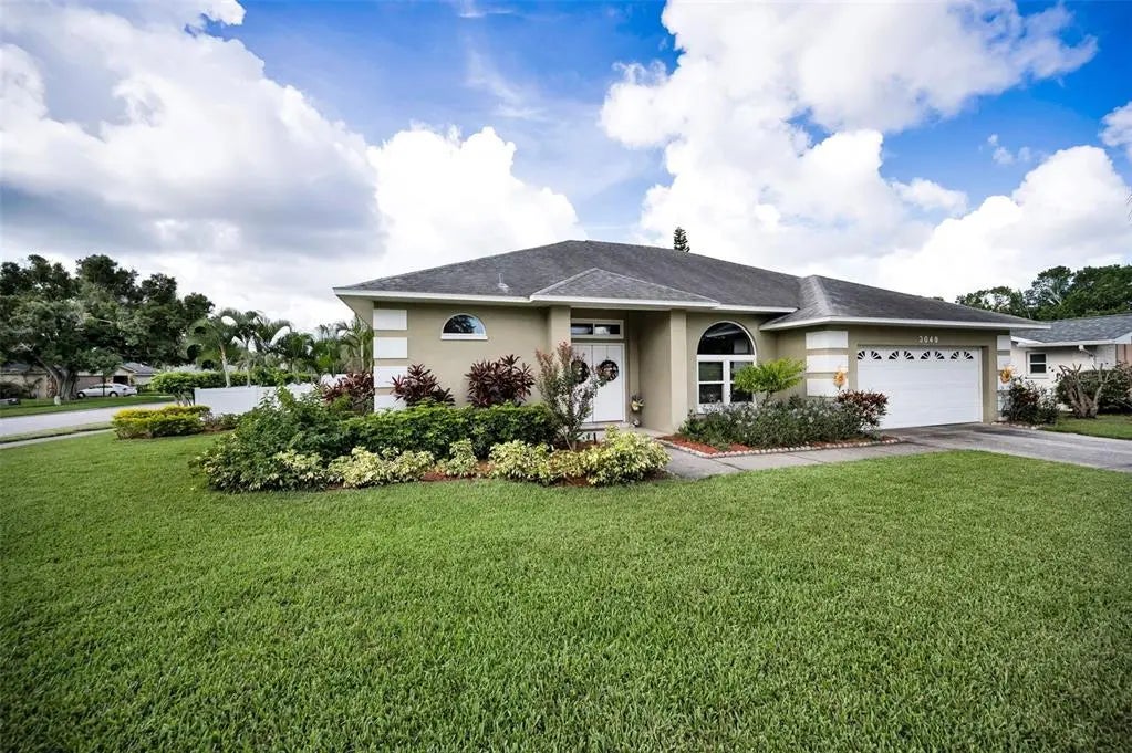 GREAT CENTRAL LOCATION! BRAND NEW ROOF! TRANQUIL 3 BEDROOM, 2 BATH, 2 CAR GARAGE POOL HOME has been lovingly maintained. This home is in a No Evacuation Zone and X (NO) Flood Zone, so no worries about evacuating for storms. Double-door entry opens to a welcoming foyer and great room with designated dining and living areas. The heart-of-the-home kitchen is open to the living room and family room, ensuring connectivity for the chef! Bar stools on both sides make for additional dining options. The kitchen features gleaming granite counters, white cabinets and stainless-steel appliances. This gem features a desirable open floorplan, 10 ft ceilings, and Family Room featuring a wood-burning fireplace. The Primary Suite features a spacious bedroom with glass sliding doors to the pool, plantation shutters, double walk-in closets and updated en-suite bathroom with separate soaking tub and shower, dual vanities, granite counters, extra built-in cabinetry and water closet for privacy. The bedrooms are on a popular split floor plan with the primary suite on one side of the house and 2 generous bedrooms and Second renovated bathroom across the home. Wood laminate floors are in the common areas, tile in the wet areas and carpet in the bedrooms. The outdoor pool and spa oasis will provide hours of swimming, relaxing and entertaining in covered and screened comfort. Large, fenced corner lot. Numerous updates include lighting and ceiling fans; both bathrooms, new windows and hurricane shutters in 2017, Roof August 2025, HVAC in 2015, plus interior paint and plantation shutters. Convenient Indoor laundry room is off of the kitchen and adjacent to the oversized 2 car garage. This community is located across the street from Safety Harbor and has private access to Lake Chautauqua Park for jogging, biking, horseback riding, fishing, picnics, etc. Close to Countryside Mall, tons of restaurants, shopping, 2 movie theaters, Countryside Mease Hospital, Medical providers, Ruth Eckerd Hall and more! WALKING DISTANCE to grocery stores, banking, bountiful dining options, pharmacies, and public transportation. Approx. 20 minutes to Tampa and St. Pete-Clearwater airports and #1 Clearwater Beach, Caladesi Island, numerous parks & so much more! Room sizes are approximate.