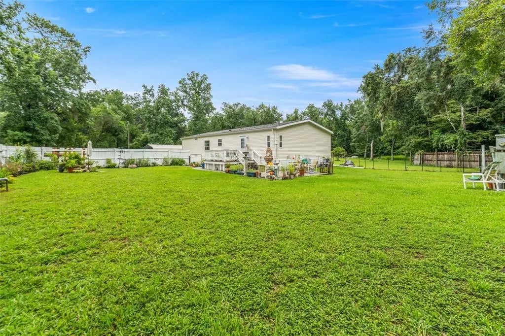 Enjoy peaceful country living on 1.2 fully fenced acres with this well-maintained 3-bedroom, 2-bathroom doublewide manufactured home in Brooksville. Built in 2004, this home features an open floor plan with a spacious living area, dining space, and a kitchen equipped with ample cabinetry and a new dishwasher. All bedrooms offer walk-in closets, and the primary suite includes a private bath. Recent updates include a new AC system, new hot water heater, and upgraded appliances—providing comfort and efficiency. Two covered carports offer shaded parking or additional storage. The expansive lot provides room for outdoor living, pets, gardens, or future additions, all without HOA or CDD restrictions. Located just a short drive from local amenities, shopping, and major roadways, this property blends rural charm with everyday convenience. A great opportunity for first-time buyers, seasonal residents, or those seeking space and flexibility.