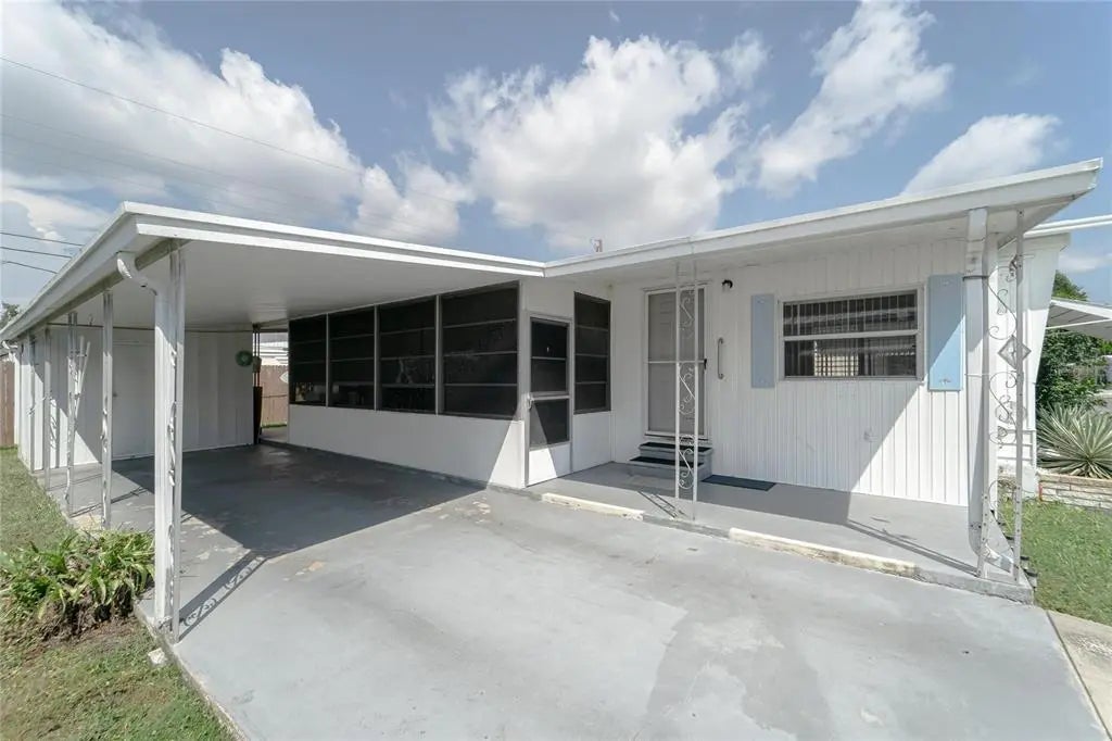 Affordable Florida Living—And You Own the Land! Welcome to the quiet and welcoming 55+ community of Fair Lane Acres! This clean, freshly painted 1-bedroom, 1-bath home may be compact inside, but it lives larger thanks to the spacious screened-in Florida Room—perfect for relaxing, entertaining, or even hosting overnight guests during the cooler months. This easy-to-maintain property includes covered carport parking, washer/dryer hookups, and a handy outdoor storage shed for your beach gear, tools, or holiday decorations. Fair Lane Acres is a pet-friendly community offering a pool, shuffleboard, and regular activities for residents to enjoy. The low monthly HOA fee of just $131 includes water and sewer, making this an incredibly budget-friendly option for snowbirds or anyone looking to downsize and simplify. And don’t forget—you’re just minutes from world-class beaches, great dining, shopping, and everything the beautiful Gulf Coast has to offer. This could be your perfect winter getaway or cozy year-round home base in sunny Florida. Come take a look!