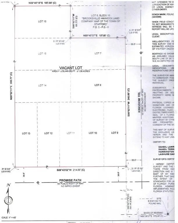 Beautiful wooded homesite property. Investment opportunity for multiple mobile homes or single family houses. 10 already divided lots on a total of 1.4 acres. Survey has been done for the total 1.4 acres. The county has it divided into 10 lots already zoned R1A for mobile homes or single family residences.Lots 9-13 are approximately 41X120 and the remaining 5 lots are approximately 53x107. The individual lots have not been surveyed so the Buyer must be responsible for surveying and obtaining exact measurements for each lot. Due Diligence should be done with the county for the building requirements and set backs. Property is in the safe flood zone X, great for insurance. This is a unique hard to find property zoned for mobile homes or single family residences with already divided lots. This beautiful wooded property is only 15 minutes to Brooksville and Spring Hill shopping centers, restaurants, hospitals, and schools. Only 10 minutes from the Suncoast Parkway allowing a quick commute to Tampa. Builders and mobile home dealers take advantage of this property already divided for multiple homes.