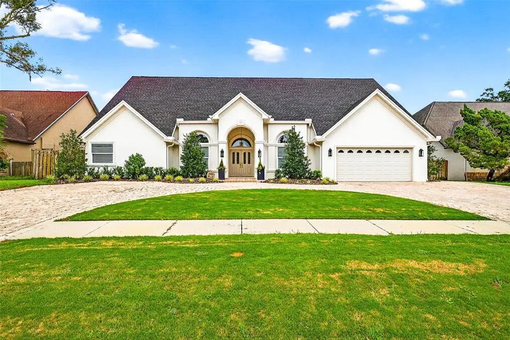 Under contract-accepting backup offers. Welcome to an elegant executive residence in the coveted Landmark Palms community of Clearwater. This 3,000+ sqft home offers the perfect balance of refined details, modern updates, and Florida lifestyle living — all nestled on a quiet cul-de-sac street in the desirable Countryside area. A stately circular paver driveway and grand double-door entry set the tone for what awaits inside. Step into the formal living room, where soaring vaulted ceilings, skylights, and French doors bathe the space in natural light and create a seamless transition to the private outdoor retreat. The formal dining room features marble inlay, tray ceiling, and chair rail, providing a perfect setting for elegant entertaining. The chef’s kitchen is a masterpiece with granite countertops, high-end Miele and Dacor appliances, a wine bar with fridge, and open flow into the family room with vaulted ceilings and a decorative fireplace. The primary suite feels like a private oasis, showcasing exposed wood-beam ceilings, two expansive custom walk-in closets, and a spa-inspired bath with frameless shower and soaking tub. The split floor plan places two additional bedrooms on the opposite wing, both with full baths and walk-in showers. One is an en-suite guest retreat, and both enjoy direct access to the pool. A dedicated office with French doors and built-ins completes the home’s versatile layout.