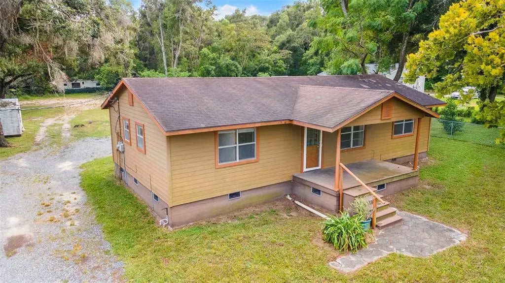 Under contract-accepting backup offers. Country Living at Its Best! Welcome to this spacious 3-bedroom, 2-bath home on nearly one acre in charming Dade City. Recently refreshed inside and out, this home offers easy-care tile in the bathrooms, cozy carpet and durable laminate in the main living areas, ceiling fans throughout, and charming wainscoting accents in the living room. This home also has a bonus room that can be used for an office, den, etc. Relax with your morning coffee on the inviting front porch or spend evenings in the peaceful backyard with a covered porch and large metal storage building. The oversized lot is a rare find, providing endless opportunities—create an outdoor entertaining space, start a garden, add a workshop, or simply enjoy room for pets and play. Nestled in a quiet setting just minutes from town, this move-in ready home combines the serenity of country living with the convenience of nearby shopping, dining, and schools. Priced to sell—don’t miss this affordable opportunity!