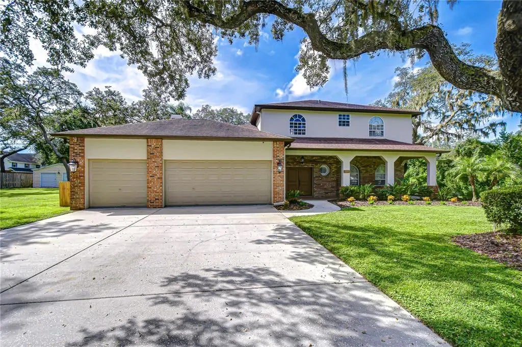 A rare opportunity in Brandon! Tucked away on nearly an acre of land, this private and peaceful estate offers the freedom of no HOA, no CDD, and no deed restrictions—all in one of the area’s most desirable locations. Behind the gated entrance, you’ll discover a property that truly has it all: 3-car garage, oversized 20x21 shed, playground, chicken coop, heated pool, and endless room to live, play, and entertain. The home has been thoughtfully updated with big-ticket improvements including a new roof & A/C unit (2016), pool resurfaced with PebbleTec and travertine deck (2017), pool heater (2017), fence & gate (2017), and a brand-new septic drain field (2025). Step through the welcoming front porch into a soaring two-story foyer. The formal living and dining rooms set the stage for memorable gatherings, while the kitchen is a true entertainer’s dream—featuring a large island, walk-in pantry, abundant cabinetry, and breakfast nook with sliders overlooking the pool. The family room invites relaxation with vaulted ceilings, a fireplace, and custom built-ins. A versatile downstairs bonus room with full bath and lanai access offers the perfect game room, media space, or in-law suite. You’ll also love the oversized laundry room with plenty of storage. Upstairs, the private primary suite feels like a retreat with its massive custom walk-in closet and en-suite bath with dual sinks, makeup vanity, and walk-in shower. Three additional bedrooms are generously sized, including one with its own en-suite—perfect for guests. A spacious upstairs loft provides the ideal flex space for a library, playroom, office, or second media room. Outside, your backyard oasis awaits! Enjoy a sparkling heated pool, oversized covered lanai pre-plumbed for your dream outdoor kitchen, and a huge yard with mature oak trees providing shade and privacy. Whether it’s hosting barbecues, raising chickens, or parking your boat or RV, this property offers unmatched flexibility and lifestyle. All this just minutes from shopping, dining, and the Brandon boat ramp. Space, privacy, and convenience—this is Florida living at its best. Copy and paste the link to tour the home virtually: my.matterport.com/show/?m=pkqPNhoUEqa&mls=1