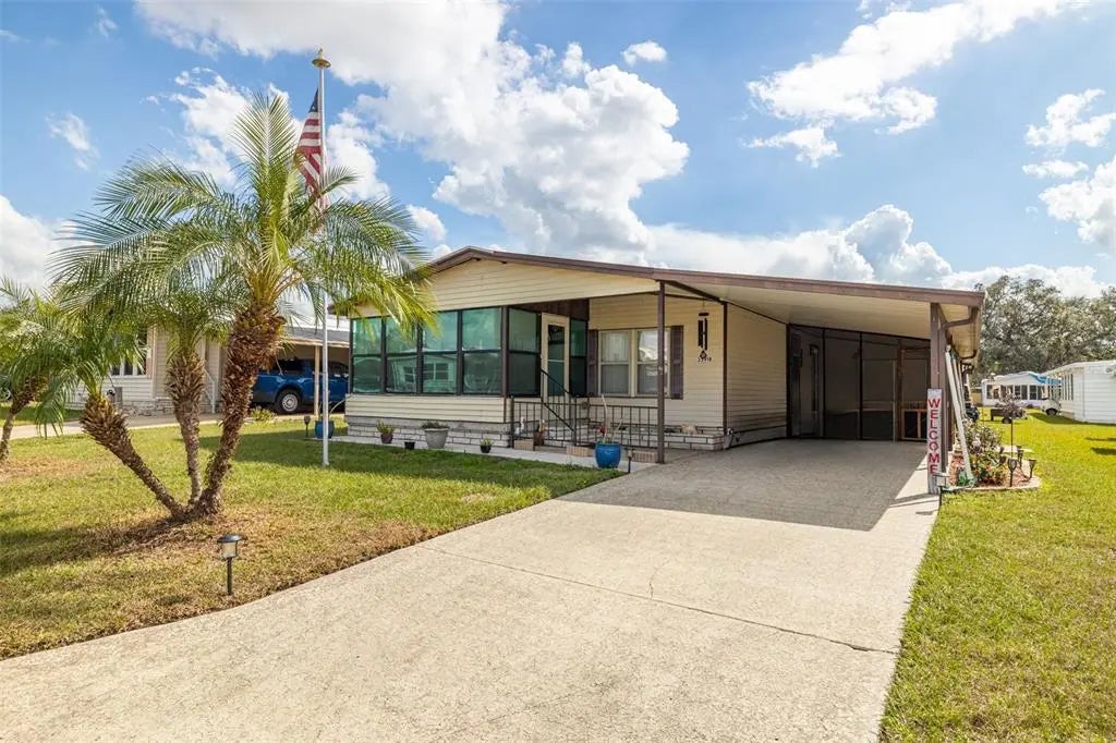 Welcome to your fabulous new home in the highly sought after 55+ community of Casa Del Sol. This is a spectacular home with so much to offer…including LOW HOA dues and NO LOT RENT! Absolutely move in ready! This 2 bedroom/2 bath home offers a bright, open, functional floorplan with many NEW updates! As you pull your car into the long driveway you’ll notice the custom, rustic-style screened in patio. This is a perfect location to get some fresh air and enjoy your morning cup of coffee or evening glass of wine. Directly off the patio is an extra-large storage area/workshop. Here you can store all your favorite holiday items, bicycles, extra refrigerator and even has room for a golf- cart. As you step into the home, you will see a dedicated laundry room inside the home (not in the storage area) with lots of cabinetry and includes a newer high-end washing machine & dryer. The heart of the home, the kitchen/living room is bright and spacious! New luxury vinyl flooring has been installed in the main living areas, kitchen, enclosed Florida room and primary bathroom. The kitchen features lots of counter space, new stainless-steel appliances, and new lighting fixtures. The formal dining room boasts new lighting fixtures and built in shelving/cabinetry. The living room is open, features a new ceiling fan and is a great place to kick your feet up! Adjacent to the living room is the enclosed Florida room. This is a special room with lots of windows, new ceiling fan and LVP flooring. The second bedroom features a new ceiling fan, and is very spacious! It can easily fit a queen-sized bed, or use the room as an office or craft-room. The secondary bathroom includes a shower/tub combo, new vanity mirror and comfort-height toilet. The primary bedroom can easily fit a king-sized bed, features a new ceiling fan, dual built-in closets and an en-suite bathroom. The en-suite bathroom boasts new LVP flooring, lots of counter space, comfort height toilet and a walk-in shower. UPDATES INCLUDE: new HVAC, water heater, updated plumbing, flooring, ceiling fans, light fixtures throughout, appliances, washer/dryer, screened-in patio and fresh paint throughout the entire home. The community of Casa Del Sol is an active 55+ community and features activities year-round! They have an exceptional sparkling pool, large clubhouse with activities and shuffleboard. Zephyrhills is away from the hustle-bustle, yet still only about 45 minutes to the airport. Restaurants, shopping and medical facilities are near-by making this the perfect home for your winter retreat or year-round home! Just pack your clothes and ready to enjoy the Florida sunshine! Call now to schedule your private showing!