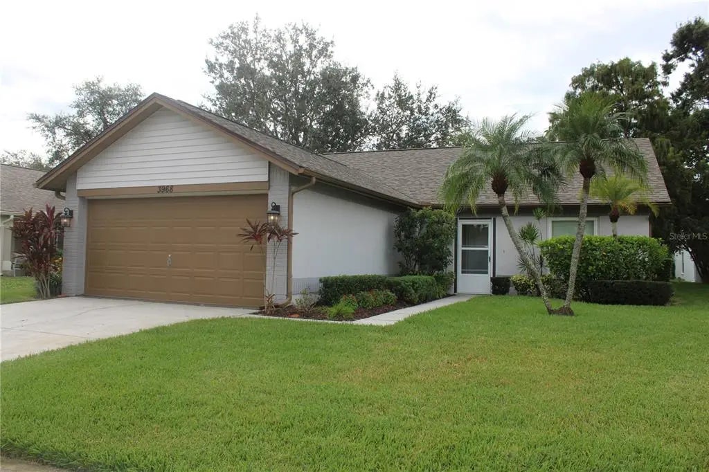 One or more photo(s) has been virtually staged. Welcome to your personal oasis! This beautifully remodeled 3 bed, 2 bath home blends modern elegance with laid-back Florida charm. From the moment you step inside, you're greeted by a sense of calm and possibility. To your right, a sunlit flex space awaits—perfect for a chic dining space, den, or sleek office. To your left, the kitchen is a showstopper with granite countertops, soft-close cabinetry, a deep stainless steel sink, and a breakfast bar with seating from the living room side. There is room for a small table under the Edison style pendant light. The living room stuns with soaring ceilings and a rich wood accent wall, and sliders to the enclosed lanai and backyard. The split floor plan offers 2 bedrooms and 1 bathroom on one side, and the primary suite is a retreat of its own on the other side. It features an elegant accent wall, a large walk-in closet, and attached bathroom with beautiful tile details. Newer AC keeps things cool, and the spotless 2-car garage comes complete with washer and dryer. Sorry, no pets. This peaceful community offers a sparkling pool, shuffleboard, and clubhouse with billiards. Located in a non-flood zone, you're just 30 minutes from the beaches, Clearwater, St. Pete, and Tampa. Close to US -19 and I-275 for ease of commuting. Rent includes grounds maintenance, sprinkler watering, internet, trash pickup, water and sewer.