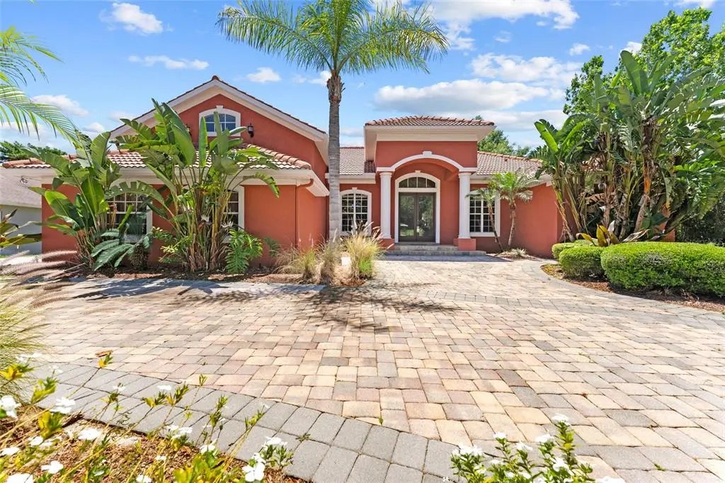 Spectacular Gated Custom Home almost 3500sq ft in the Vineyards! Executive styled quality built custom home that boasts Mediterranean-inspired architecture, highlighted by a charming barrel tile roof, double-door entryway with the largest paver circular driveway in the community. The inside is adorned with elegant archways, crown molding, and tray ceilings. The thoughtfully designed layout features customized angled rooms that enhance the spacious and open feel of the home. The kitchen is a chef's delight, showcasing 42" cherry wood cabinets, thick granite countertops, stainless steel appliances, and a convenient cooking island with a breakfast bar that seamlessly connects to the family room. Enjoy picturesque views from the mitered glass window overlooking the expansive 1100sf "L" shaped lanai with Spanish tile flooring and the tranquil shady backyard with a beautiful oak tree awaiting your picnic bench setup! Experience ultimate comfort and privacy in the master suite, complete with tray cdilings, huge walk-in closet, a luxurious garden tub, a separate shower stall, and double sinks topped with marble accents. Additional highlights include formal living & dining rooms, a built-in buffet for entertaining, a front office/den for easy access, an upstairs bonus room plumbed for a wet bar, a 3 car side-load garage and a community sprinkler well for keeping watering costs down. You can have it all. A close commute without sacrificing quality. This home is conveniently located minutes from the Crosstown Expressway, I-75, I-4 and Hwy 60. It's also within 25 miles of the TPA airport and approximately +-40 minutes from highly ranked St Pete and Clearwater Beaches. Other proximate amenities include the Brandon Mall, restaurants, schools, and hospitals. Don't let this one get away! NOTE: WASHER AND DRYER INCLUDED!